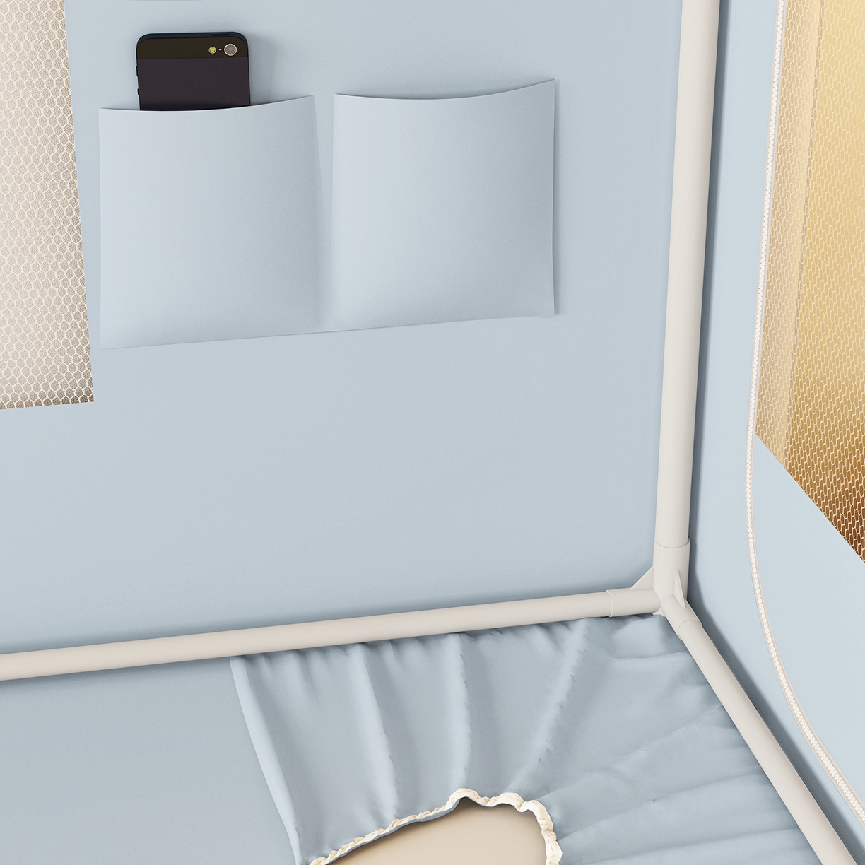 2025新款2502款美人狗烫画围栏级防摔外穿杆坐床蚊帐-场景二