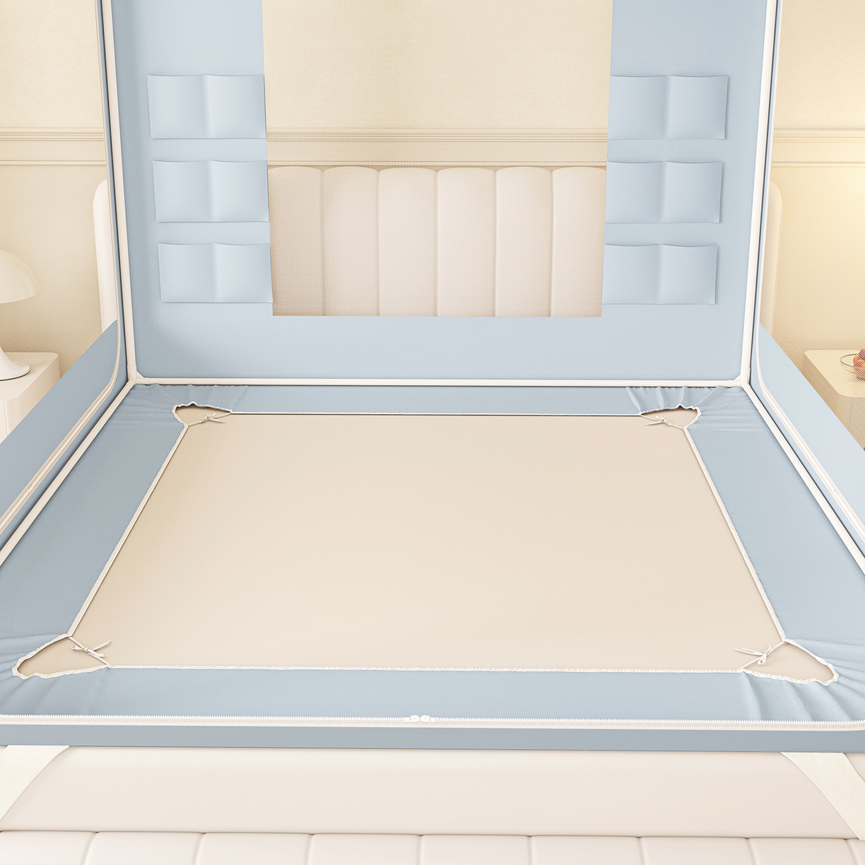 > 迪凡保罗蚊帐 2025新款2604冬季保暖夹棉纯色遮光帘蚊帐全底回底双排储物袋 蓝灰色