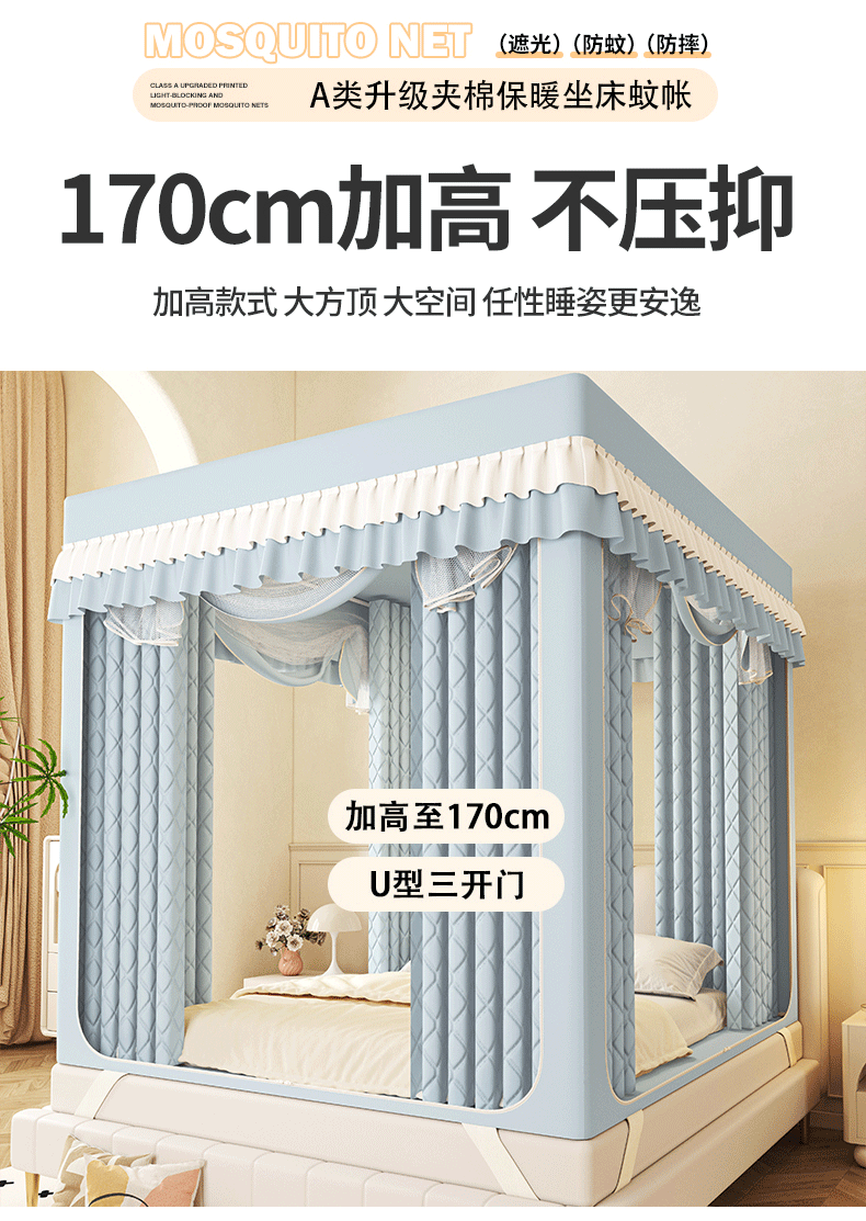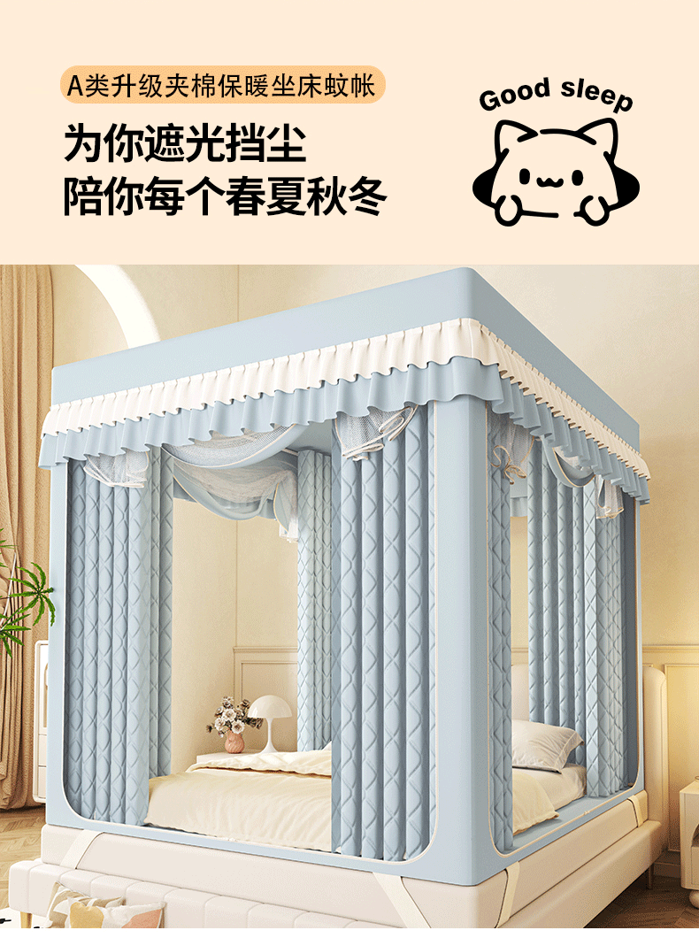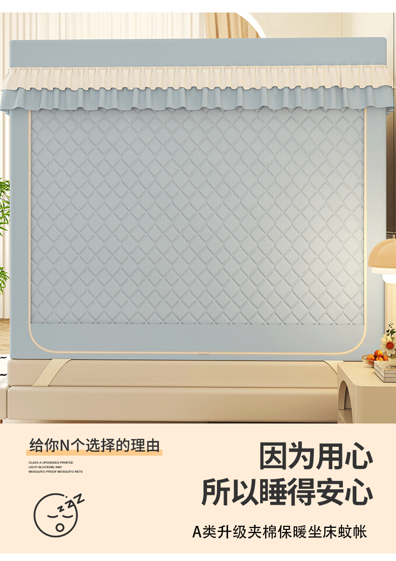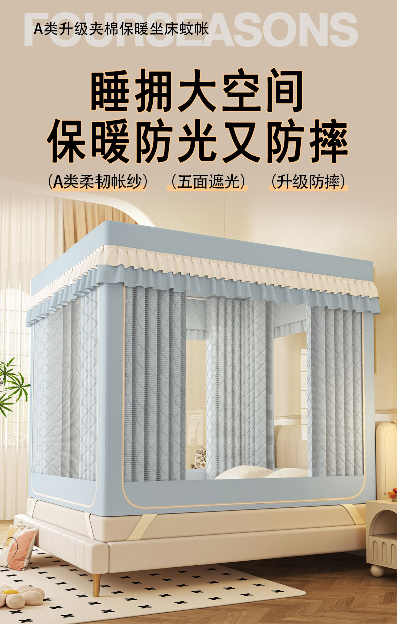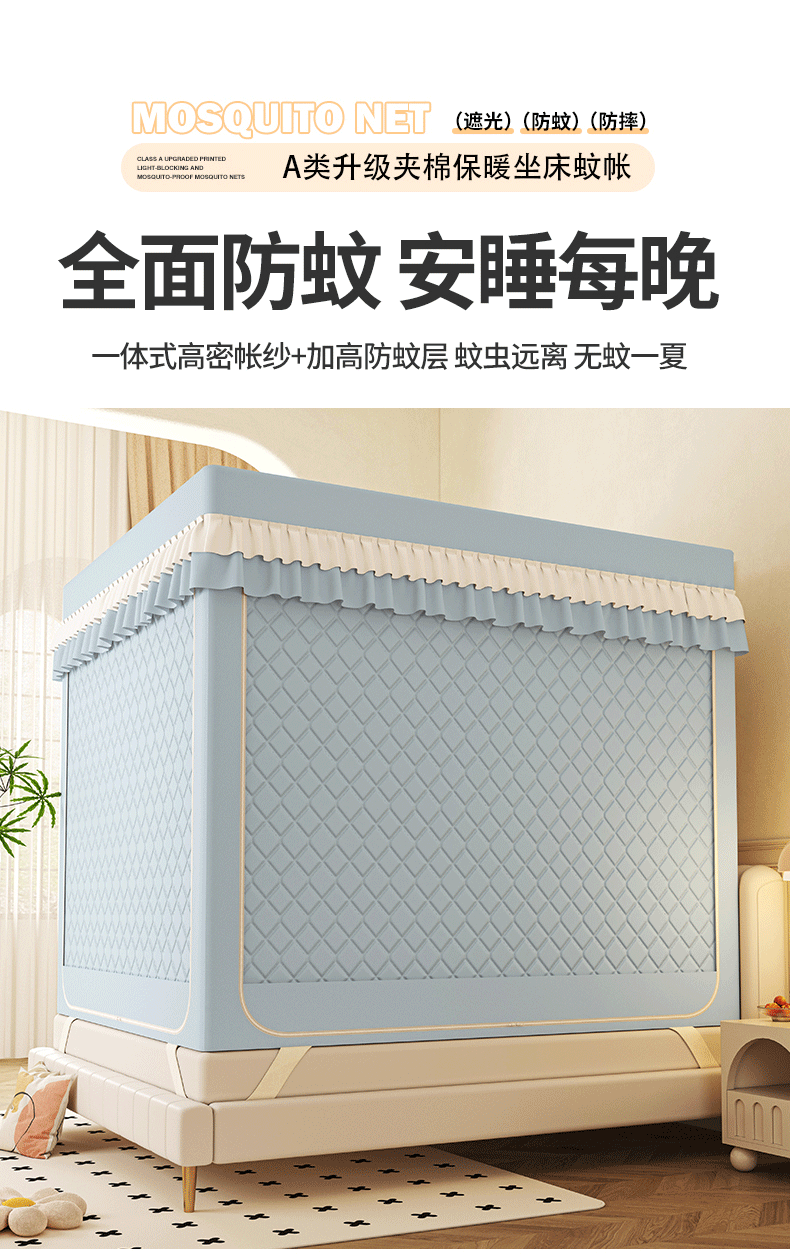 2025新款2507印花夹棉遮光保暖坐床蚊帐