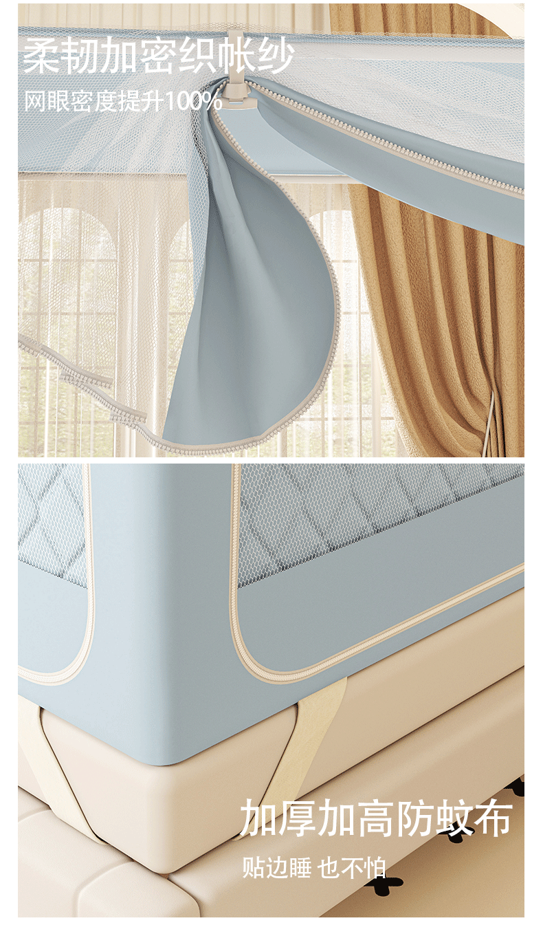 2025新款2515款凉感丝双层纱双轨铝合金落地导轨蚊帐