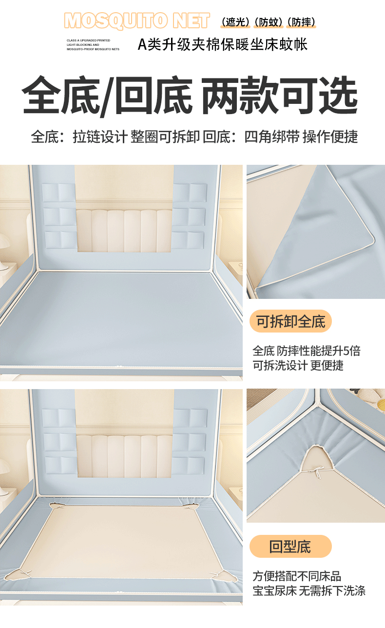 2025新款2506纯色夹棉遮光保暖坐床蚊帐
