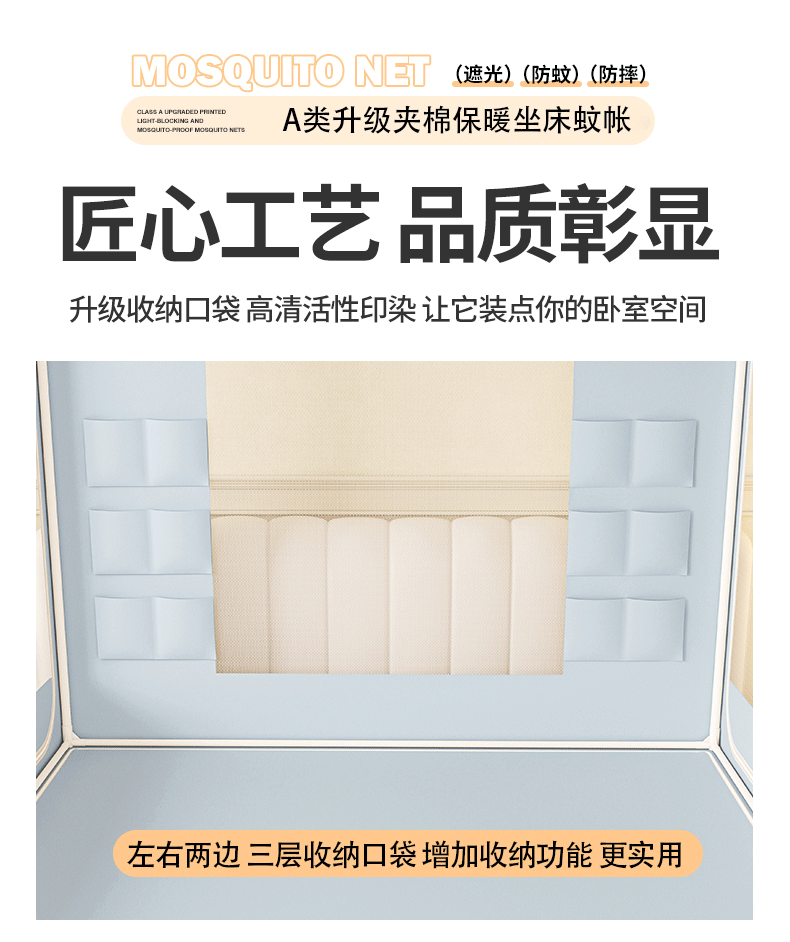 2025新款2603冬季保暖夹棉印花遮光帘蚊帐全底回底双排储物袋