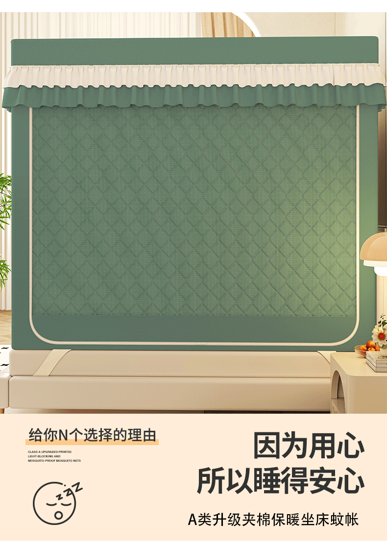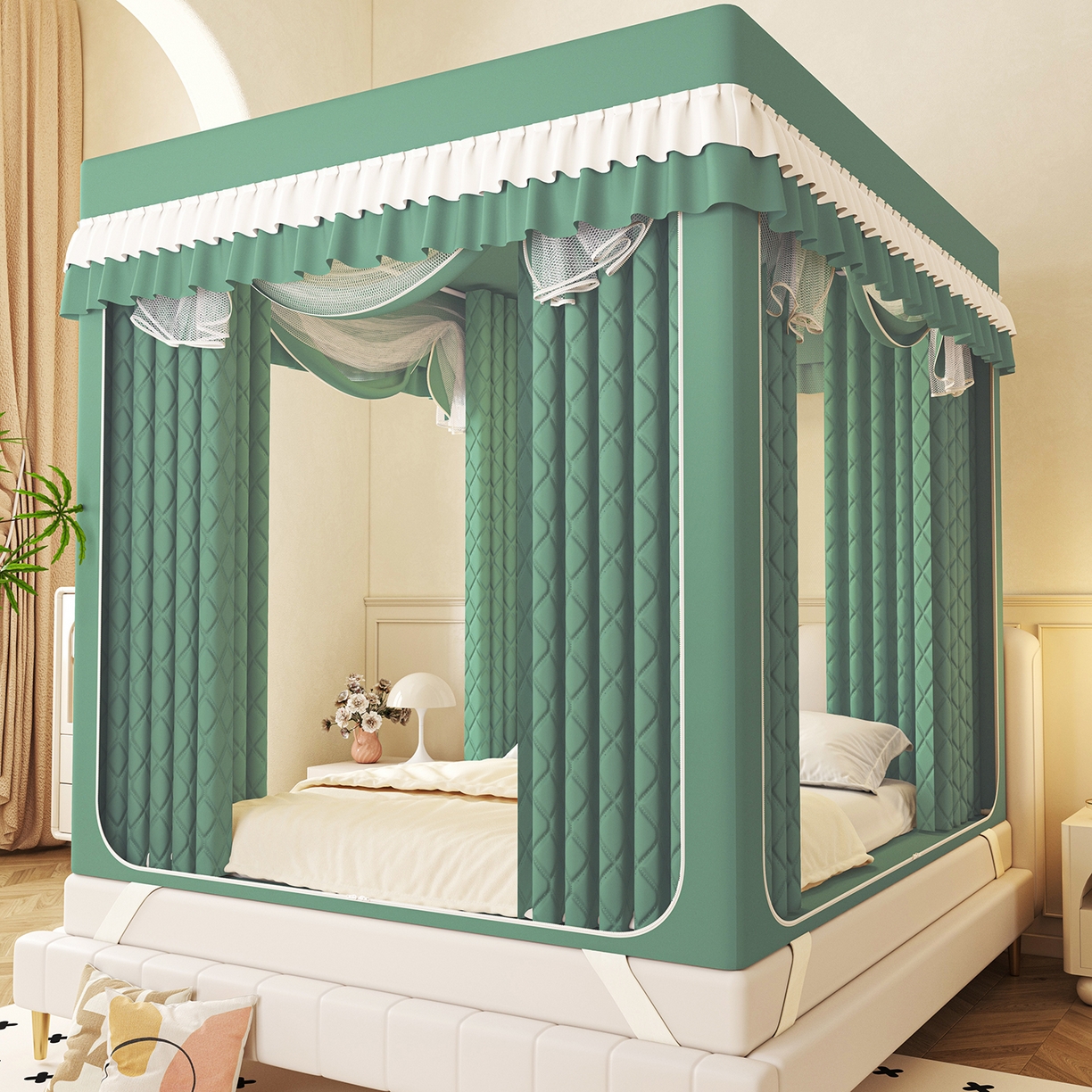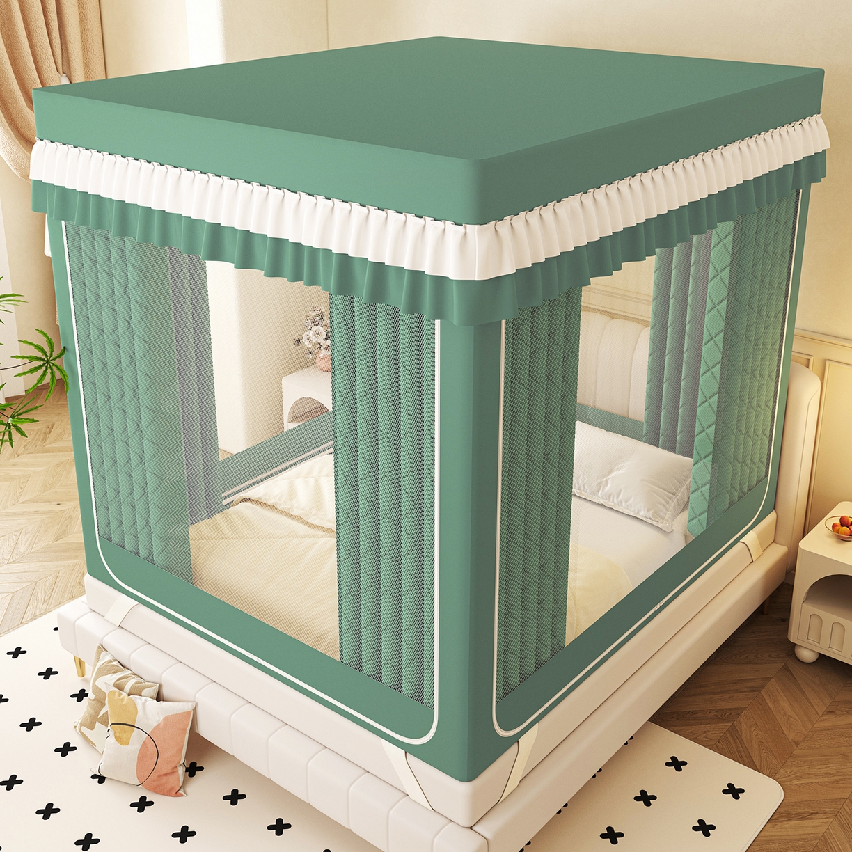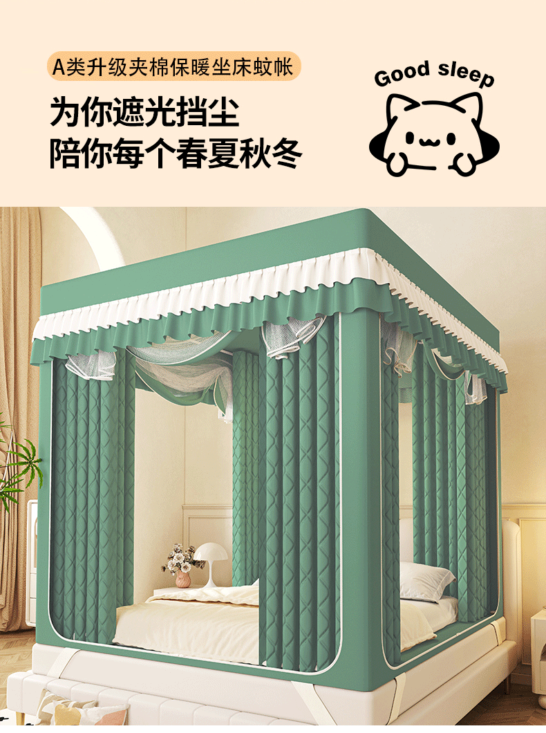 > 迪凡保罗蚊帐 2025新款2604冬季保暖夹棉纯色遮光帘蚊帐全底回底双排储物袋 太湖绿