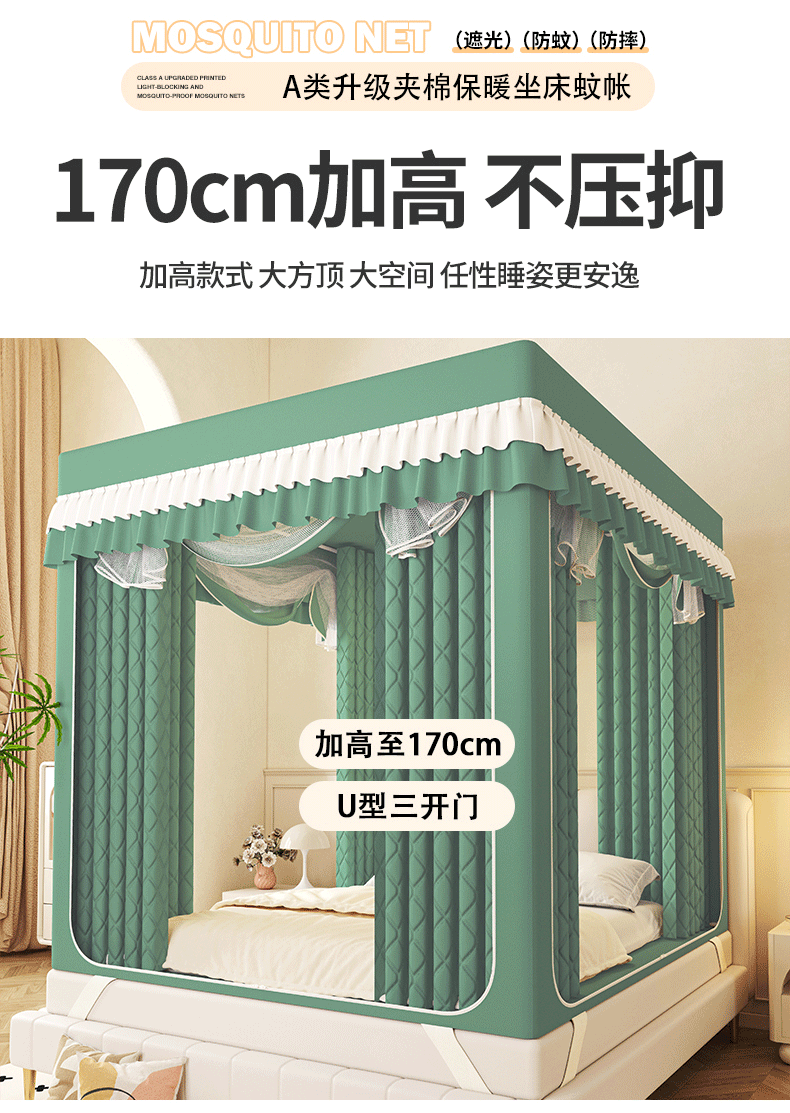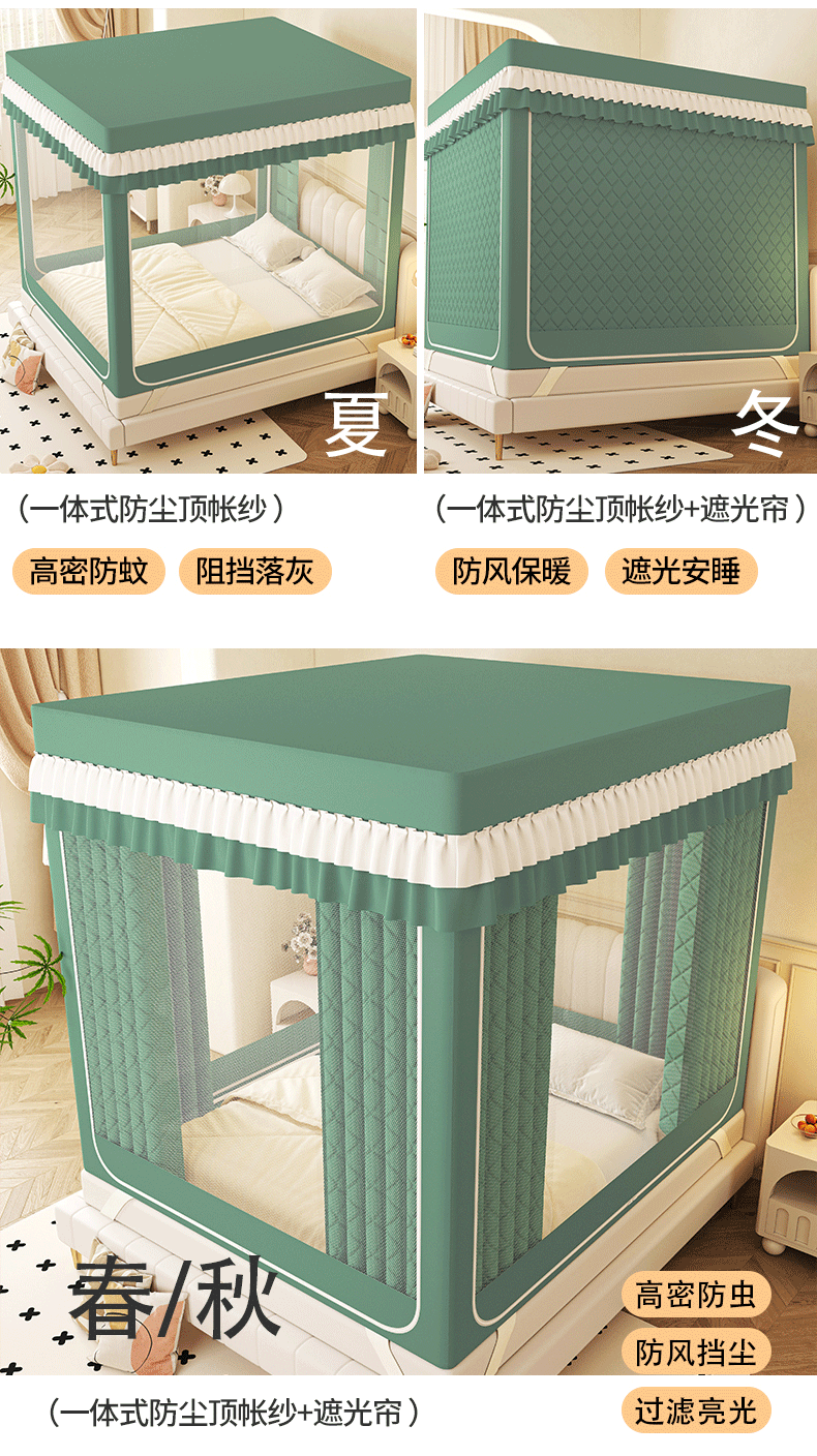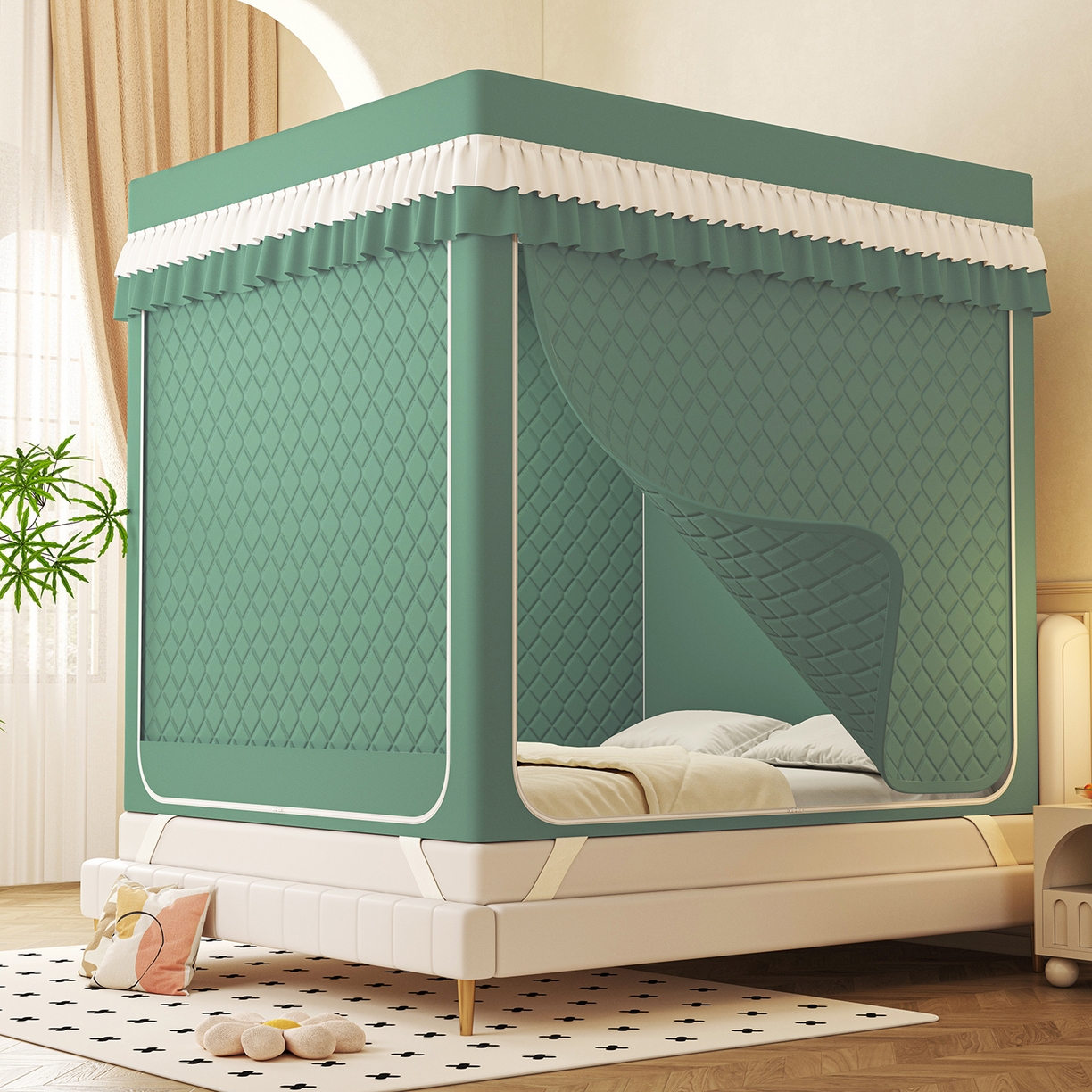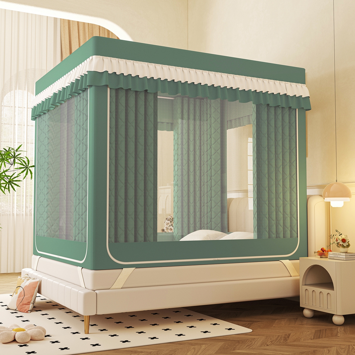 > 迪凡保罗蚊帐 2025新款2604冬季保暖夹棉纯色遮光帘蚊帐全底回底双排储物袋 太湖绿