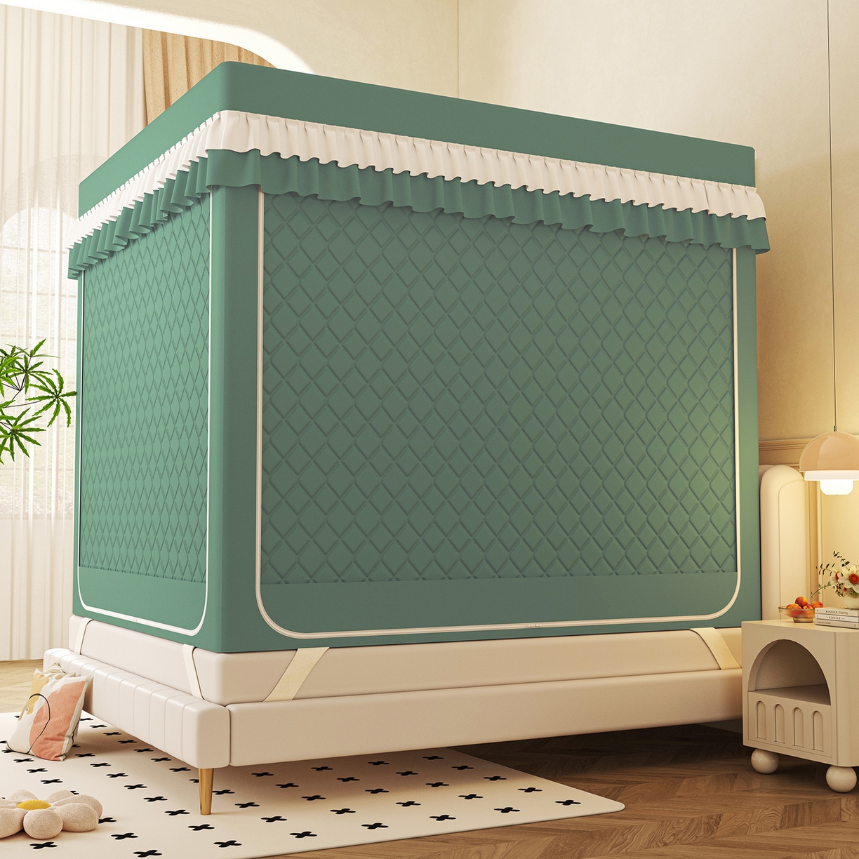 2025新款2604冬季保暖夹棉纯色遮光帘蚊帐全底回底双排储物袋