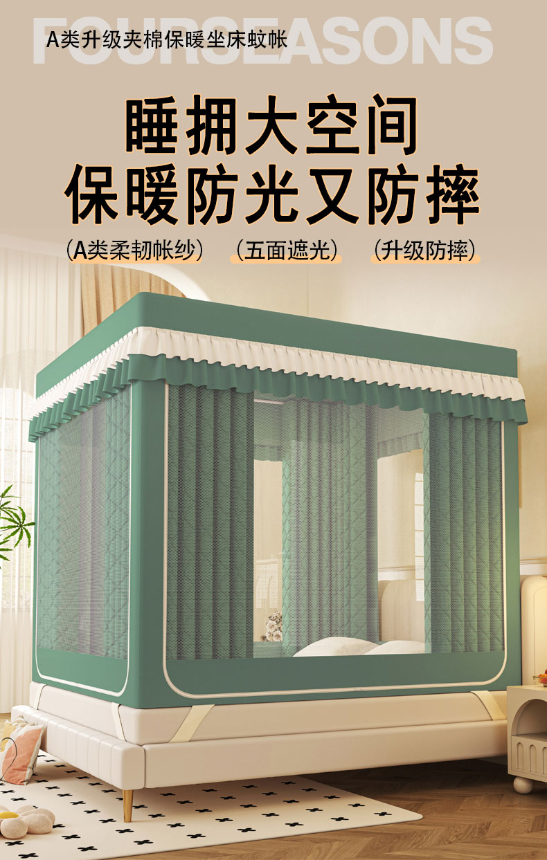 2025新款2507印花夹棉遮光保暖坐床蚊帐