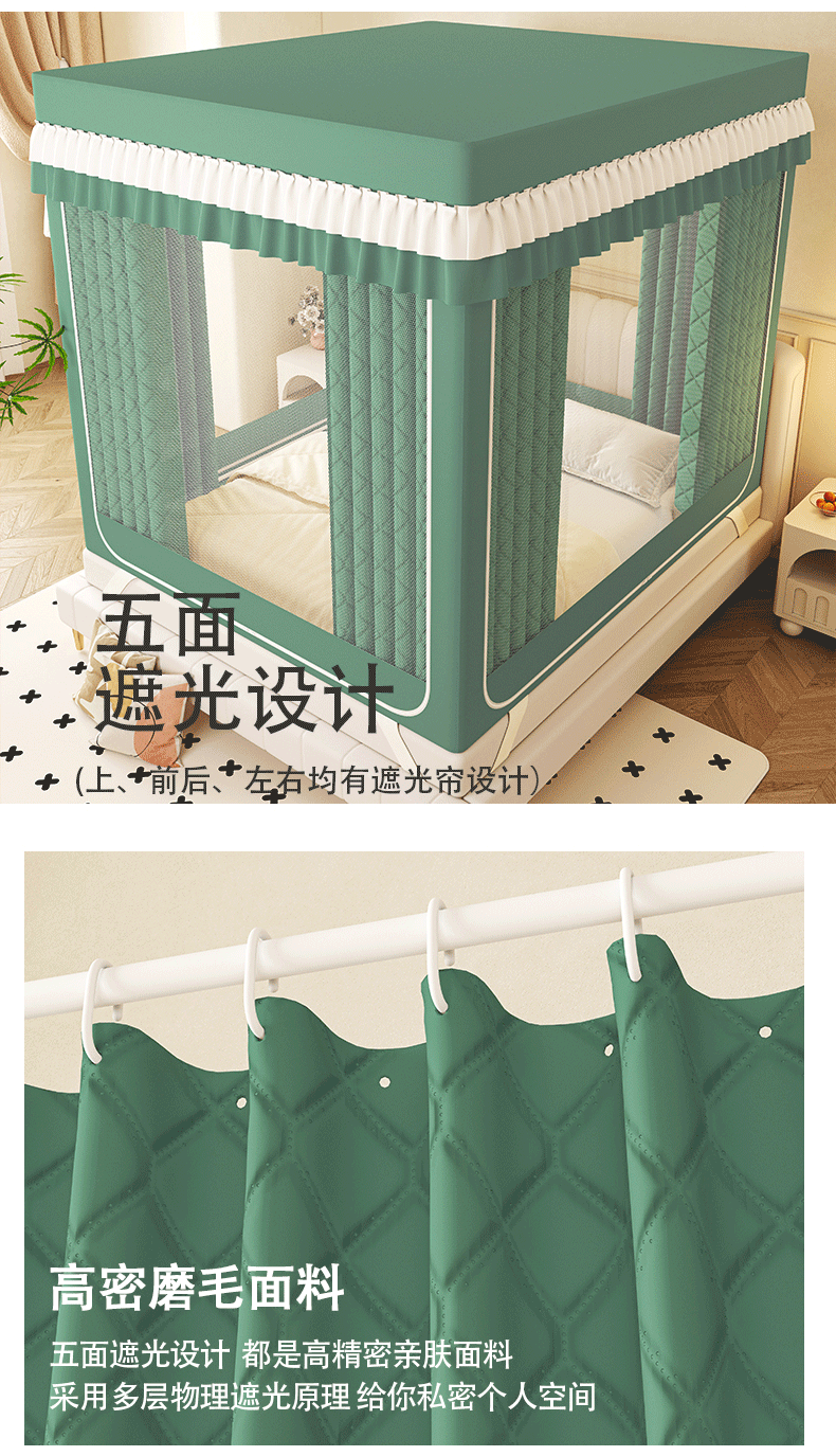 2025新款2519款纯色植绒环保五面强遮光双轨铝合金学生导轨蚊帐