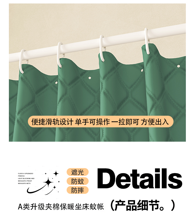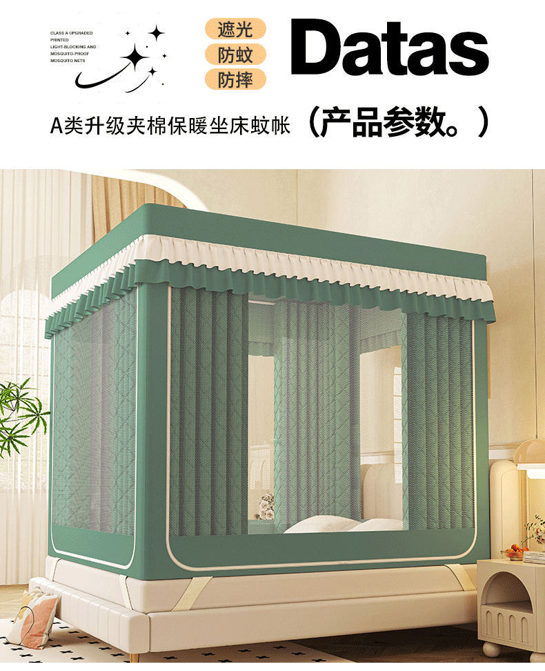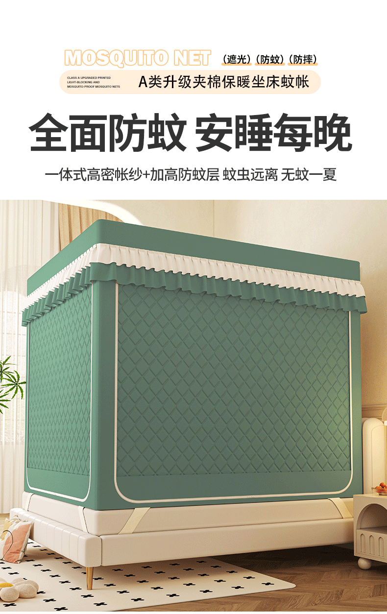 2025新款2506纯色夹棉遮光保暖坐床蚊帐