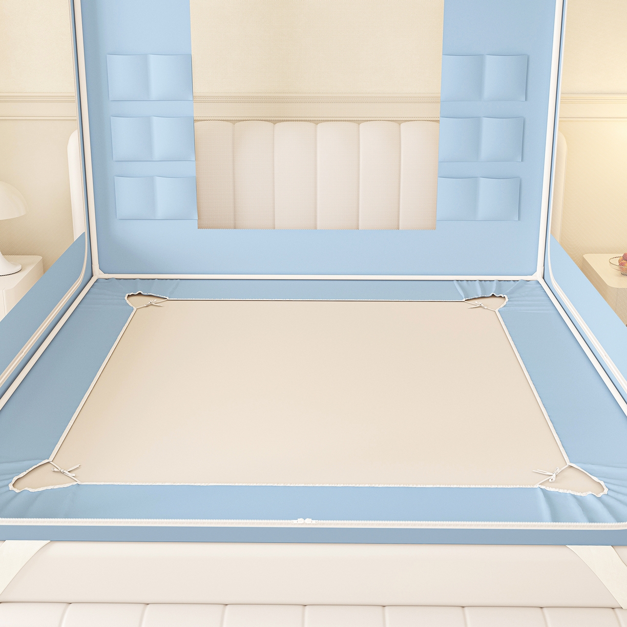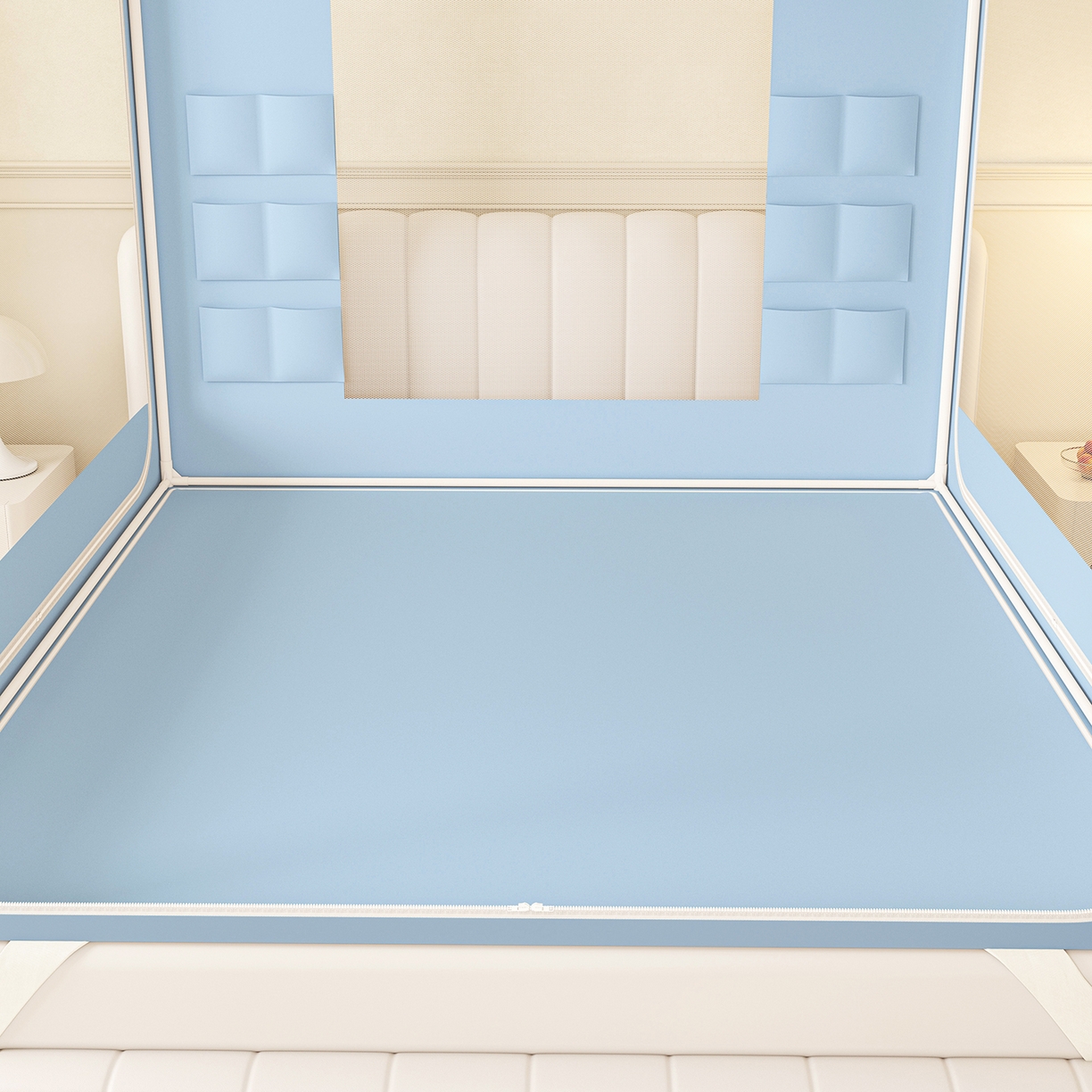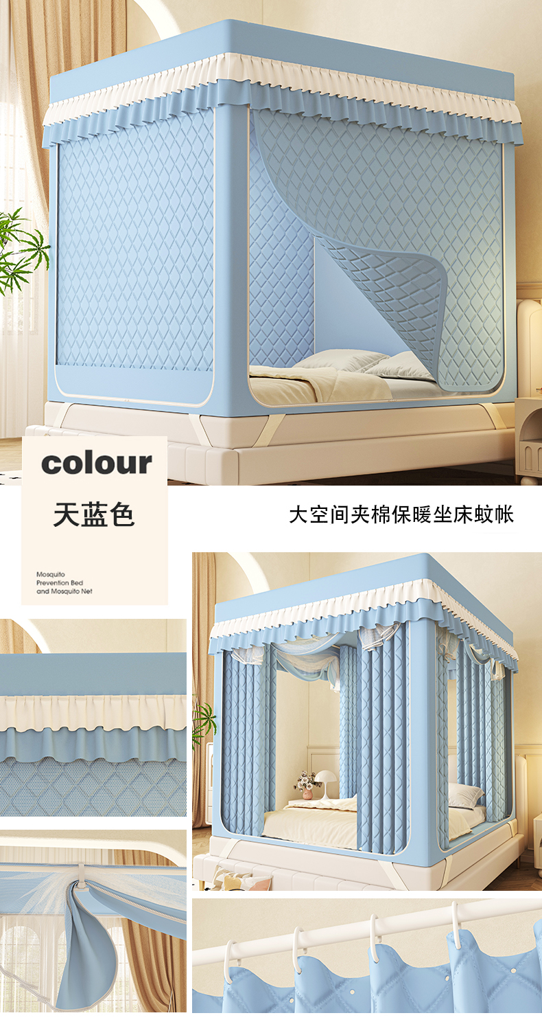 > 迪凡保罗蚊帐 2025新款2604冬季保暖夹棉纯色遮光帘蚊帐全底回底双排储物袋 天蓝色