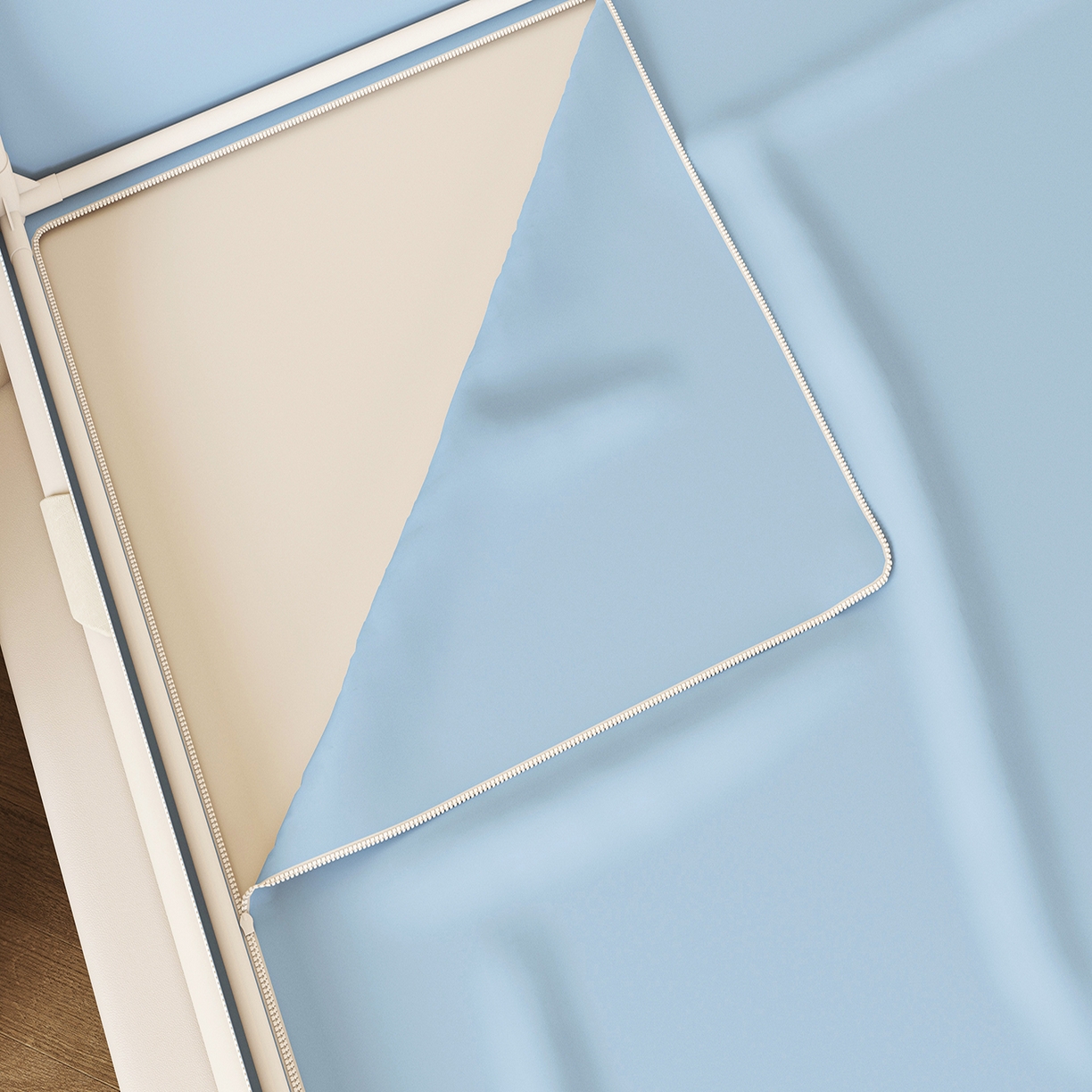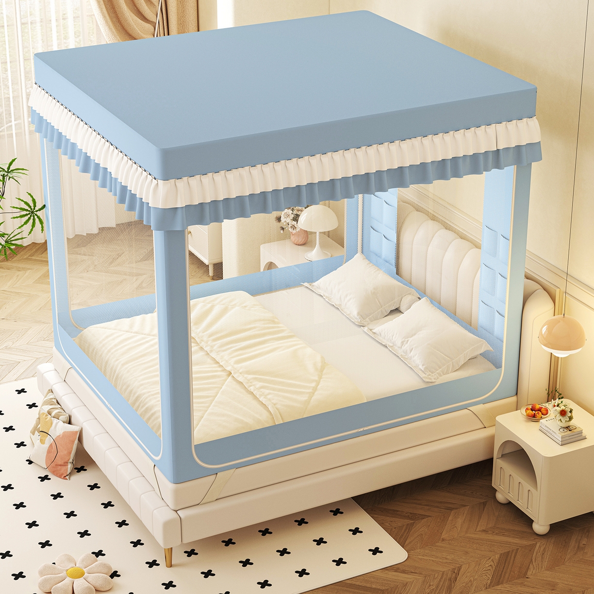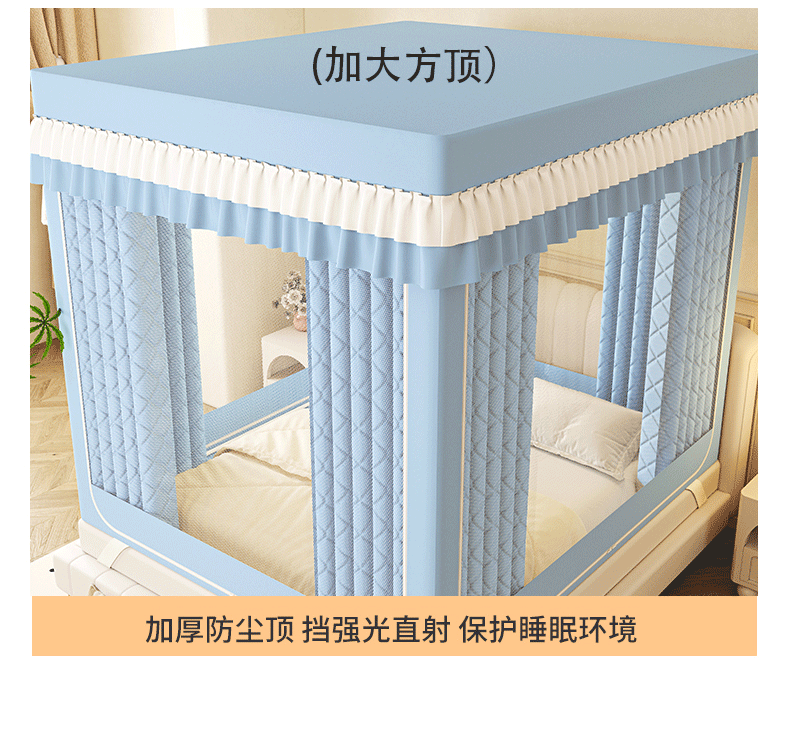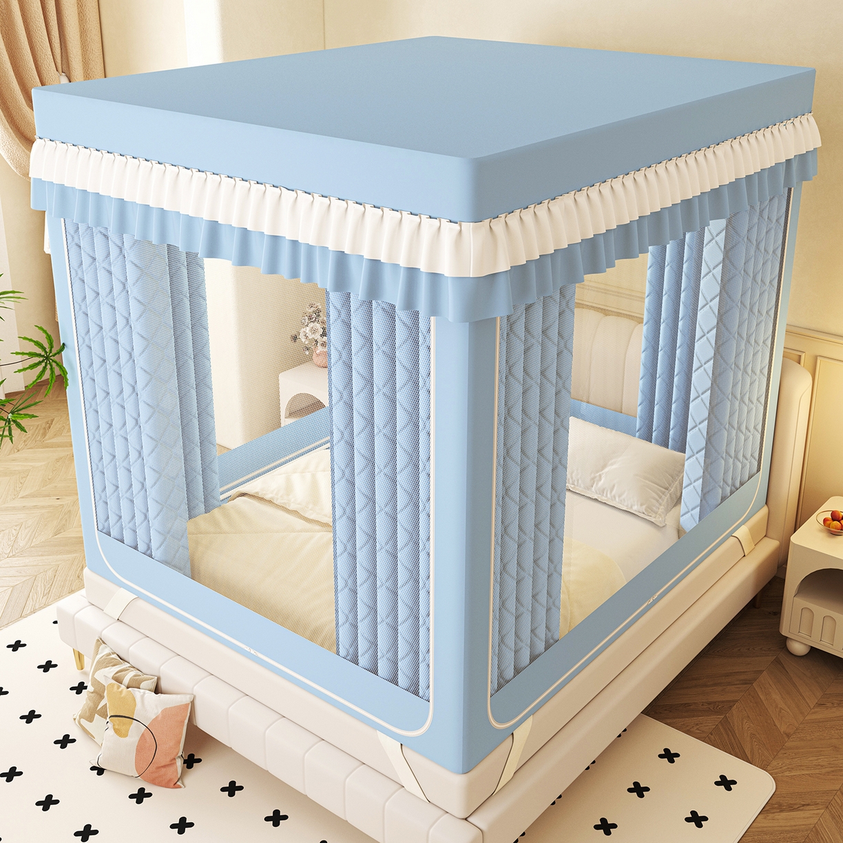 > 迪凡保罗蚊帐 2025新款2604冬季保暖夹棉纯色遮光帘蚊帐全底回底双排储物袋 天蓝色