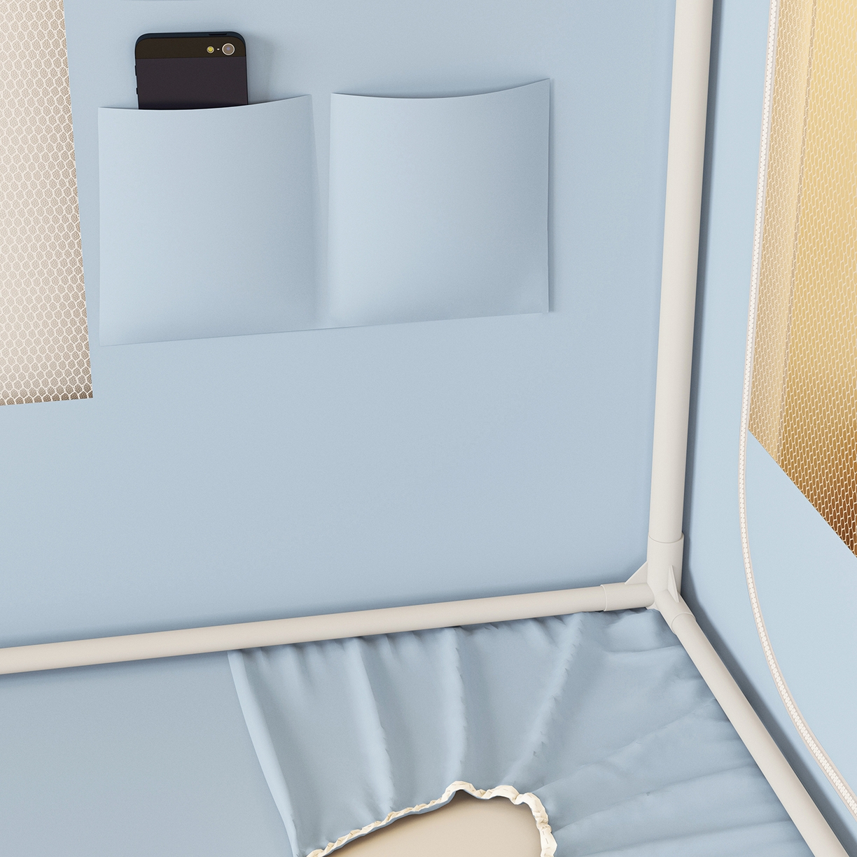 2025新款2502款美人狗烫画围栏级防摔外穿杆坐床蚊帐-场景二
