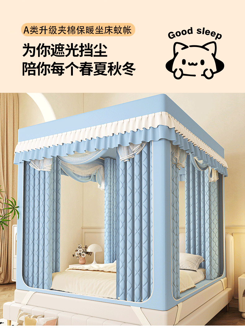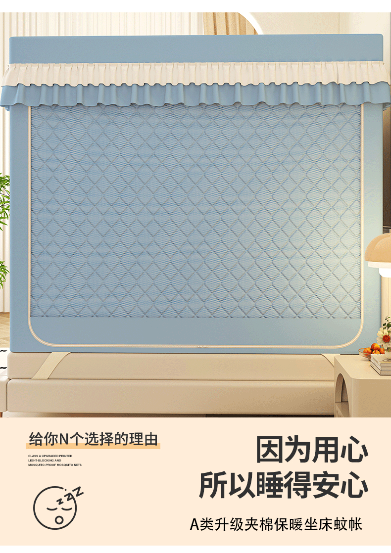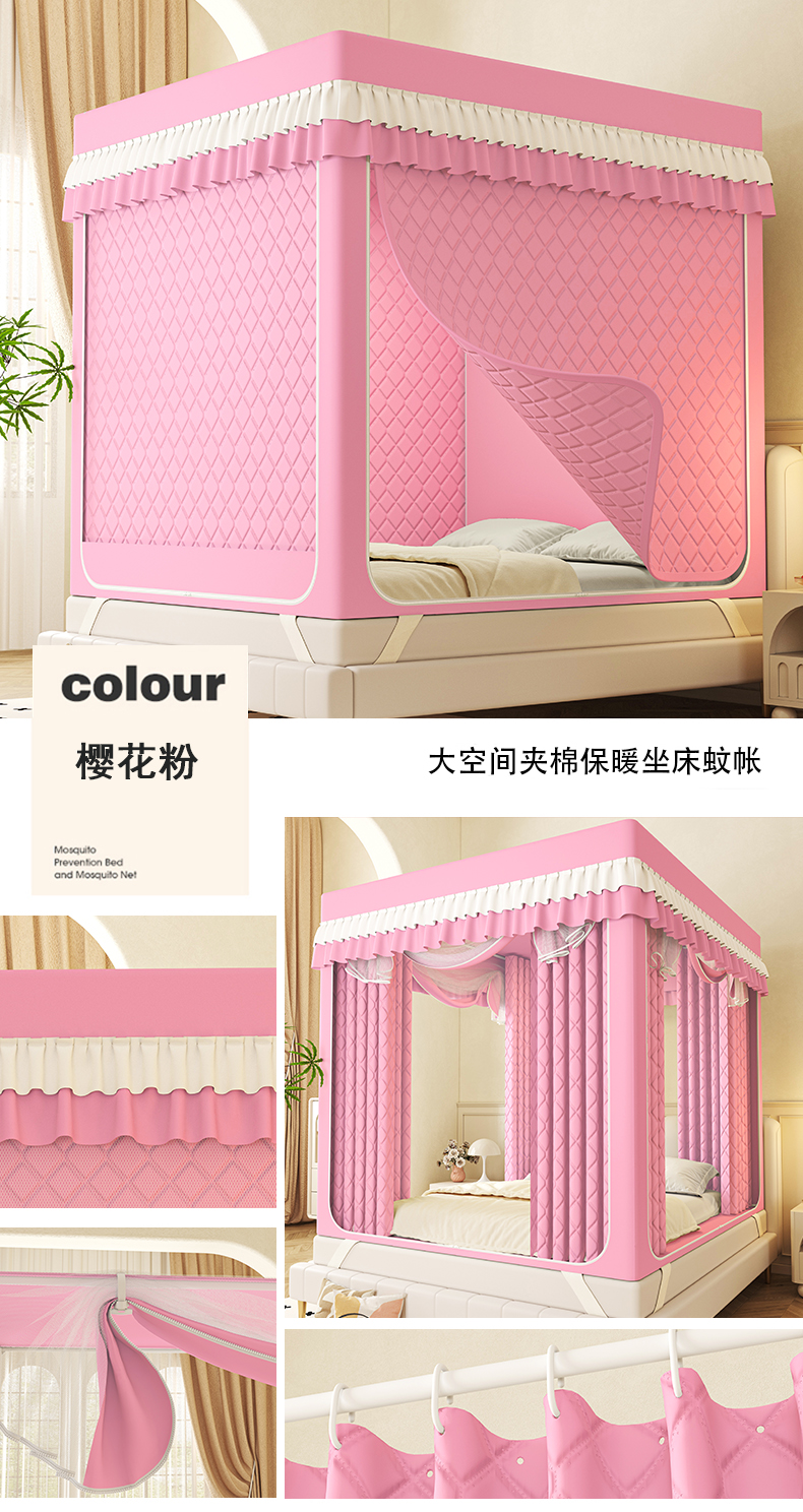 2025新款2507印花夹棉遮光保暖坐床蚊帐