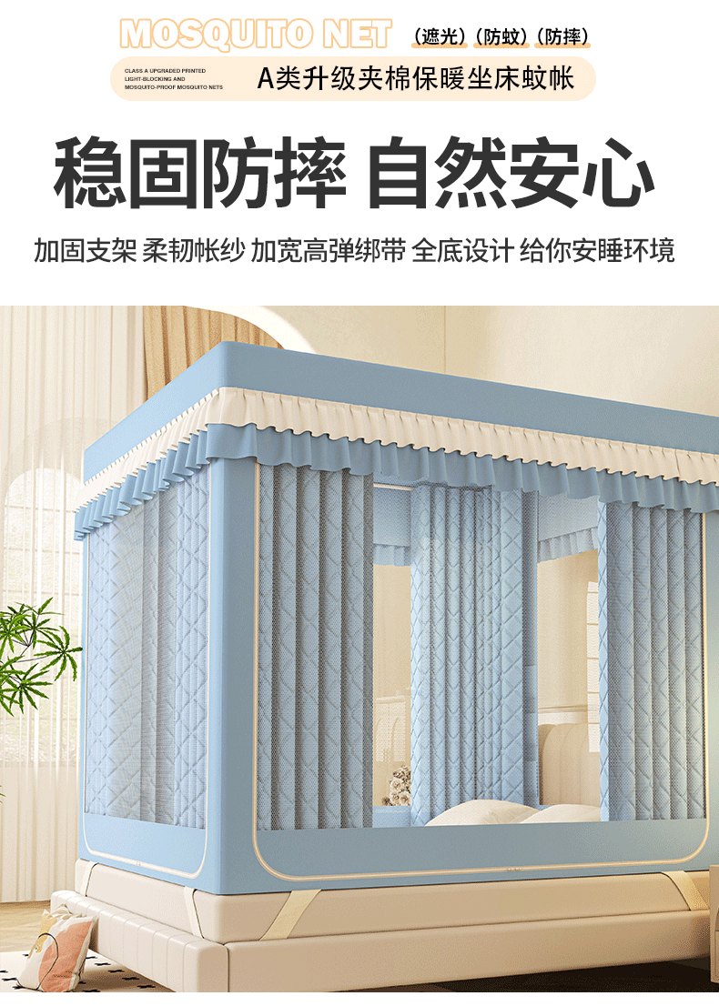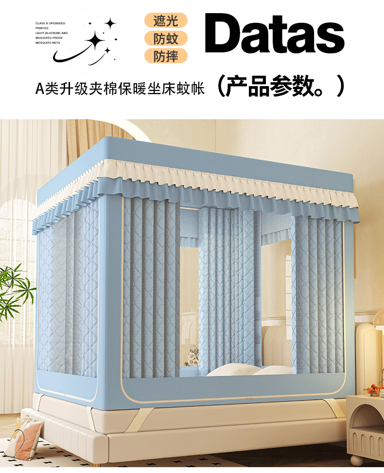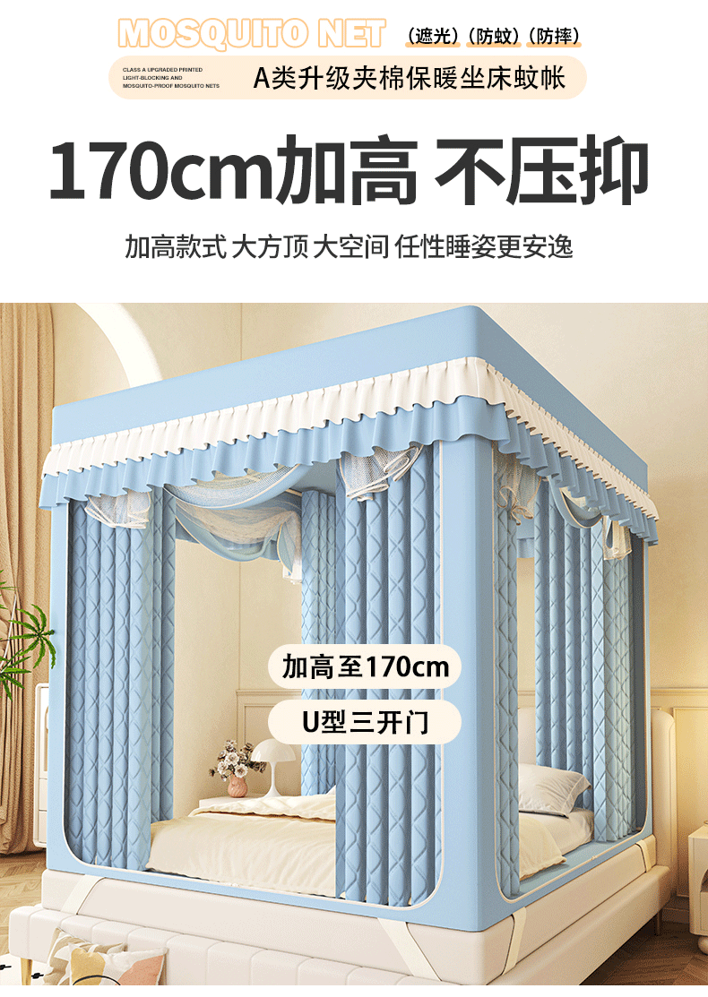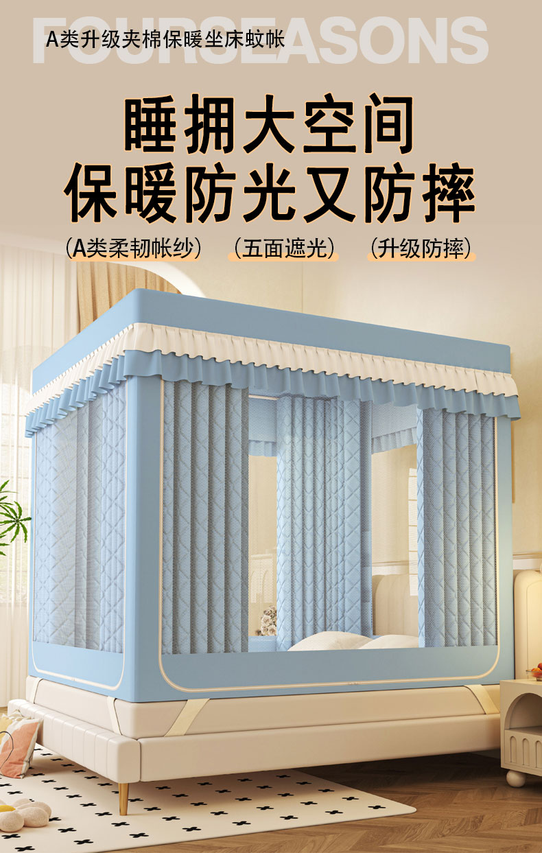 2025新款2507印花夹棉遮光保暖坐床蚊帐