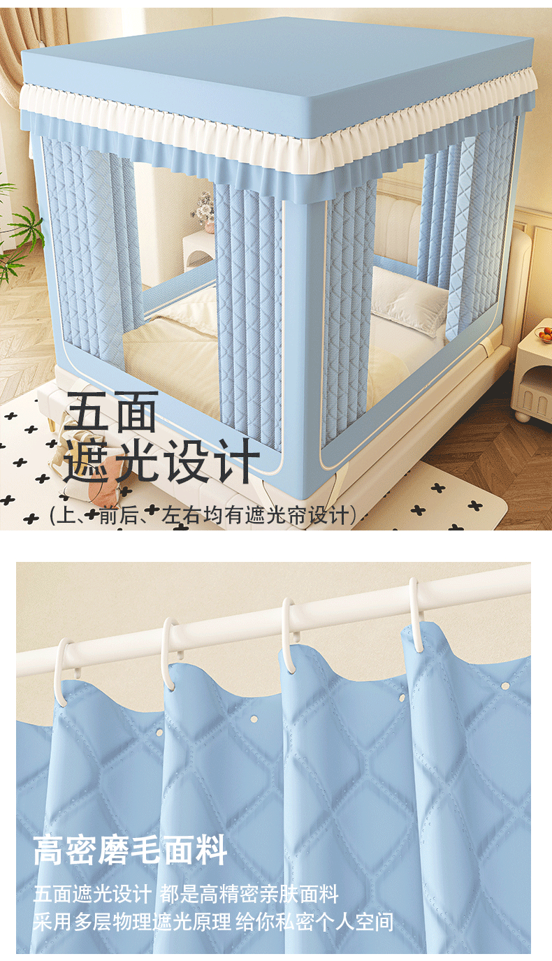 2025新款2518款纯色植绒环保五面强遮光学生蚊帐