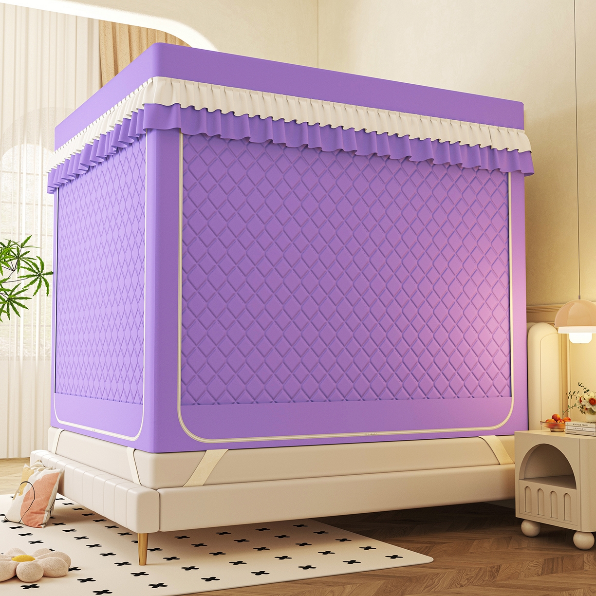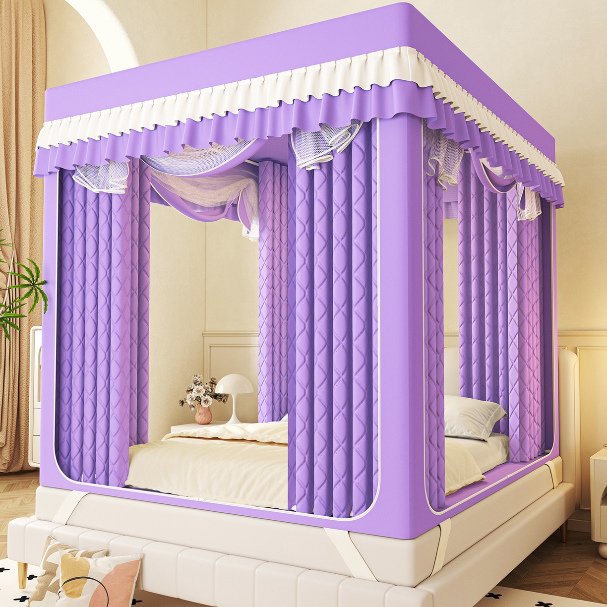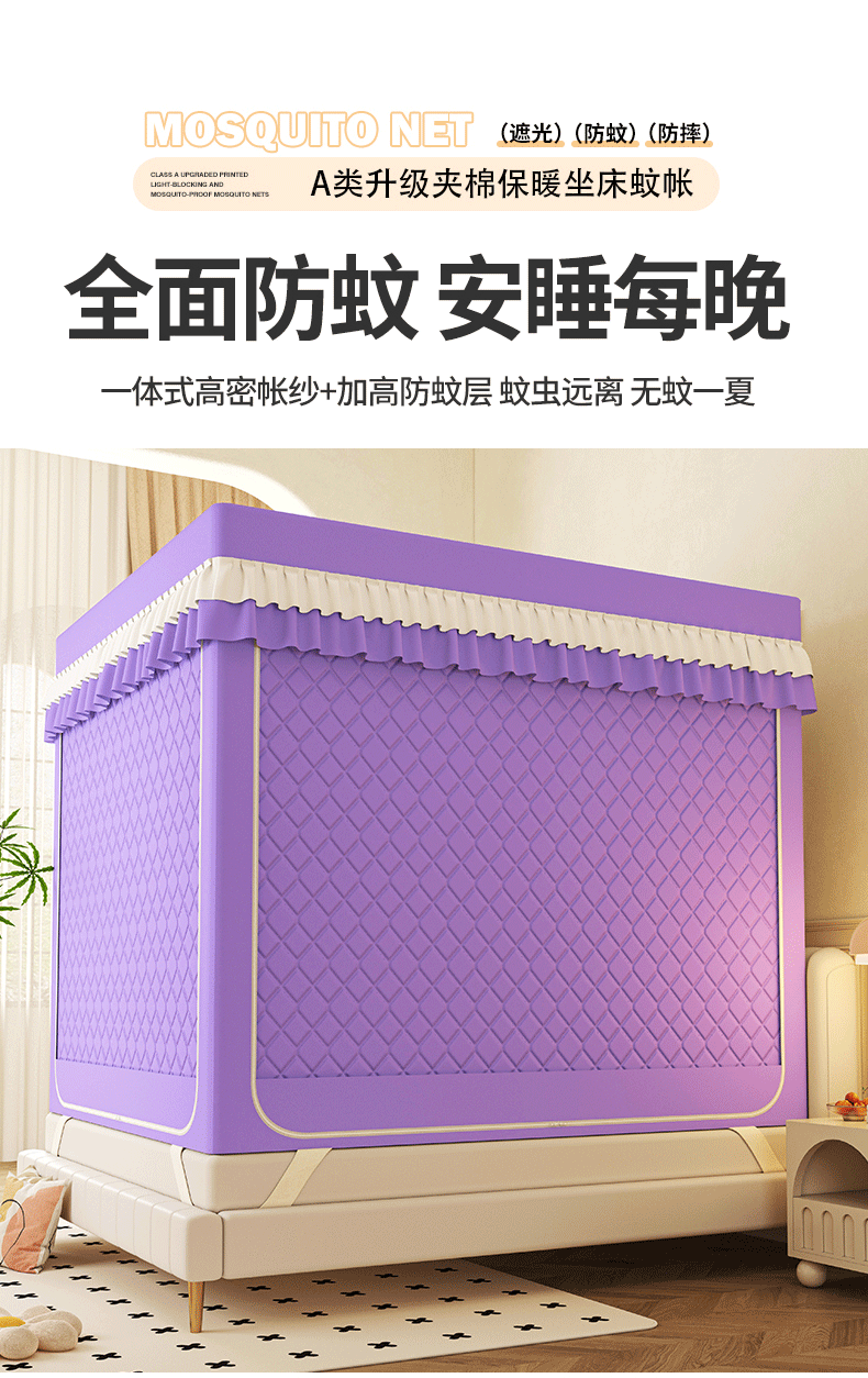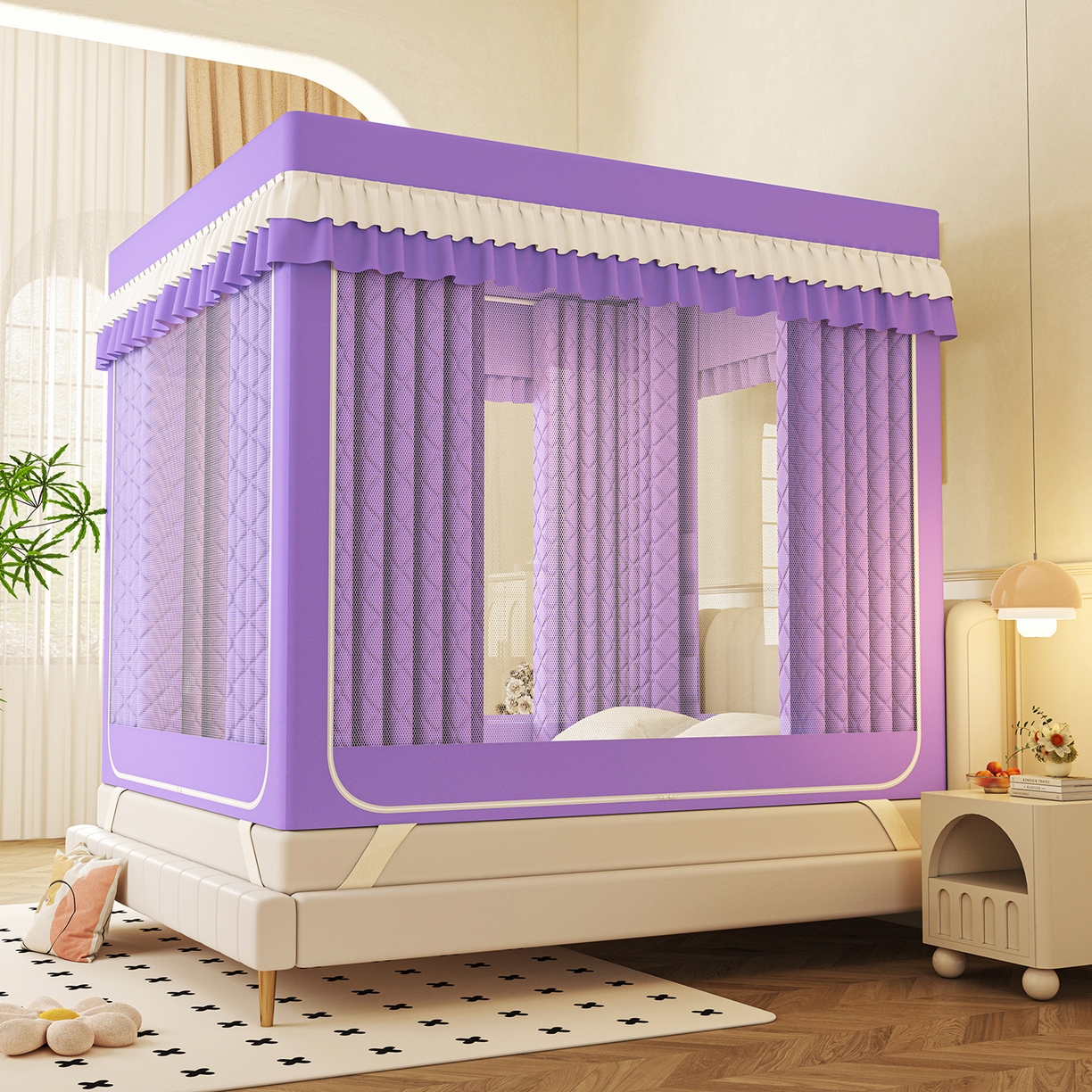 迪凡保罗蚊帐 2025新款2604冬季保暖夹棉纯色遮光帘蚊帐全底回底双排储物袋 紫色