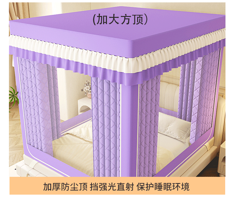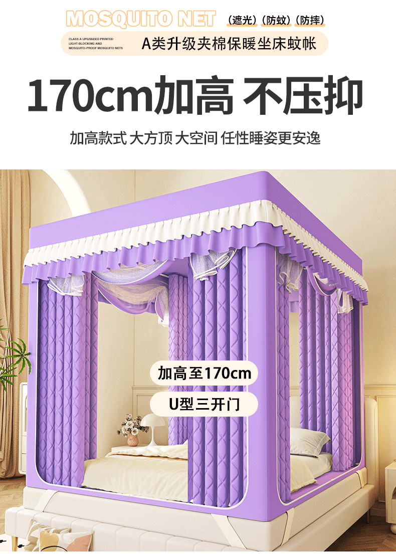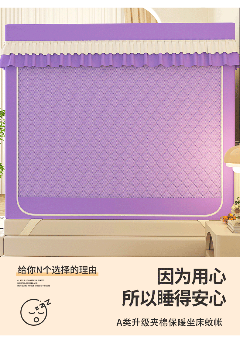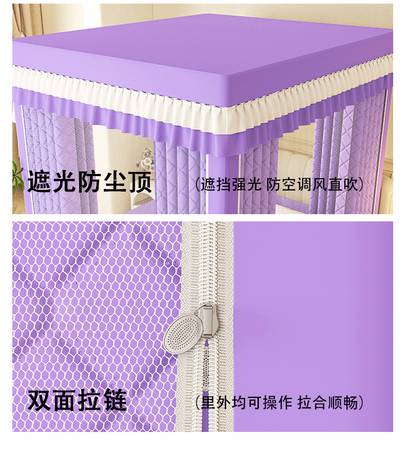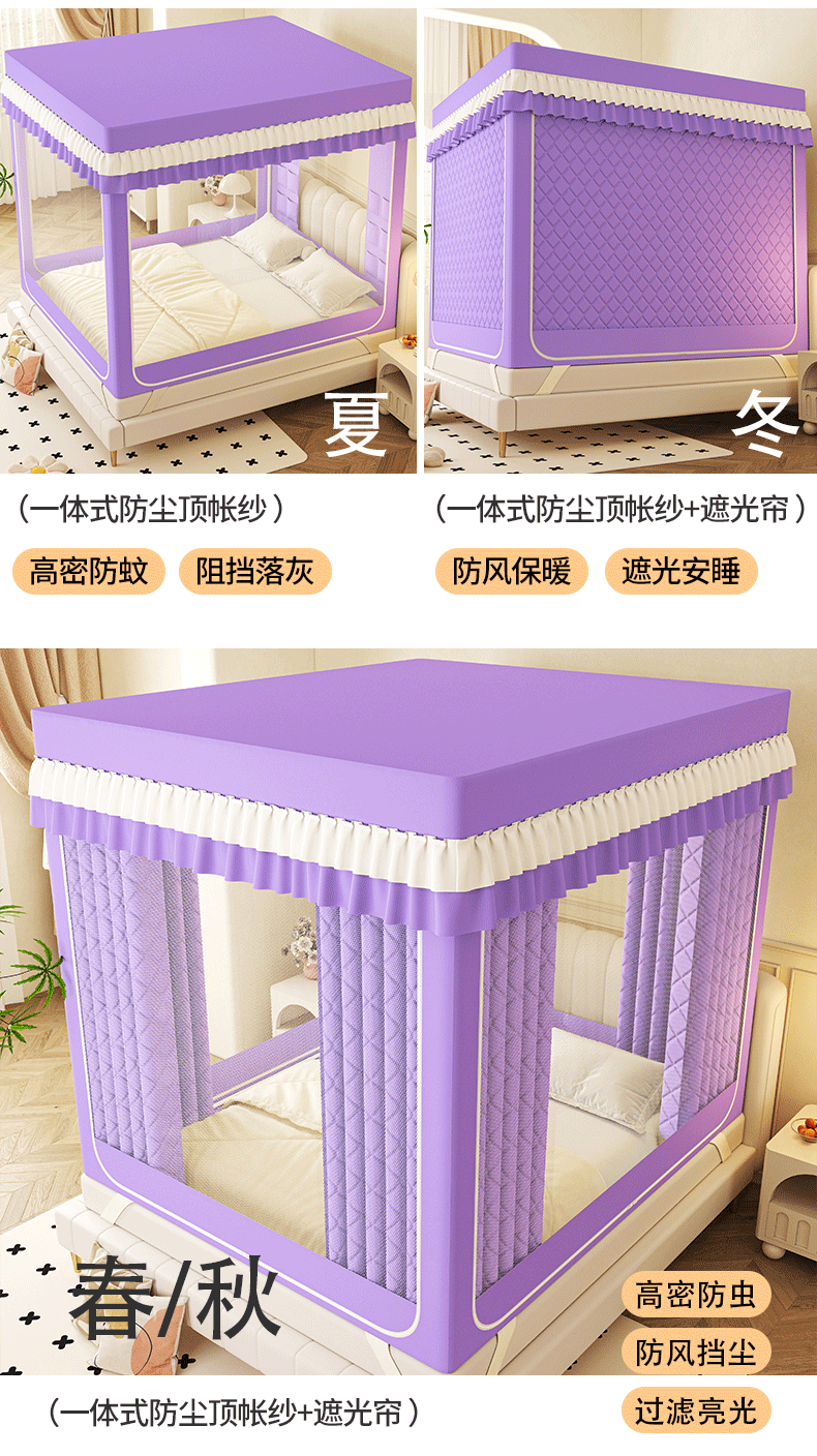 > 迪凡保罗蚊帐 2025新款2604冬季保暖夹棉纯色遮光帘蚊帐全底回底双排储物袋 紫色