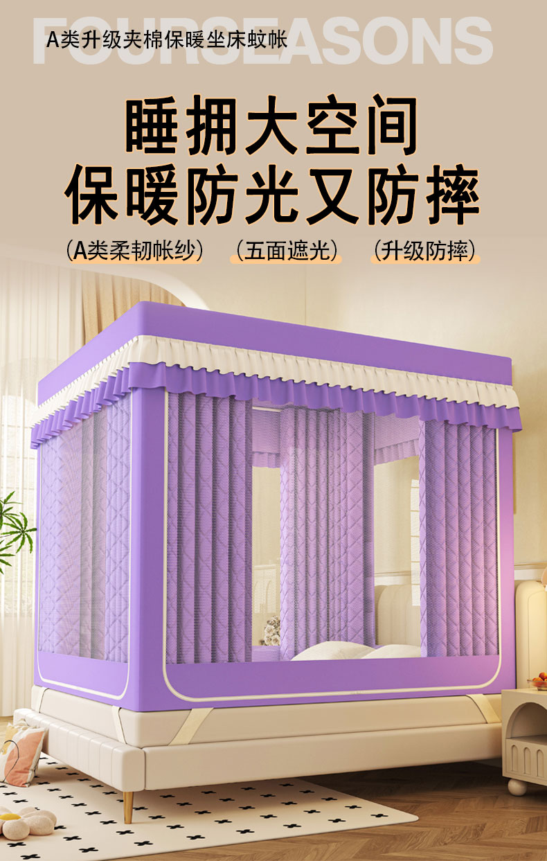 2025新款2507印花夹棉遮光保暖坐床蚊帐