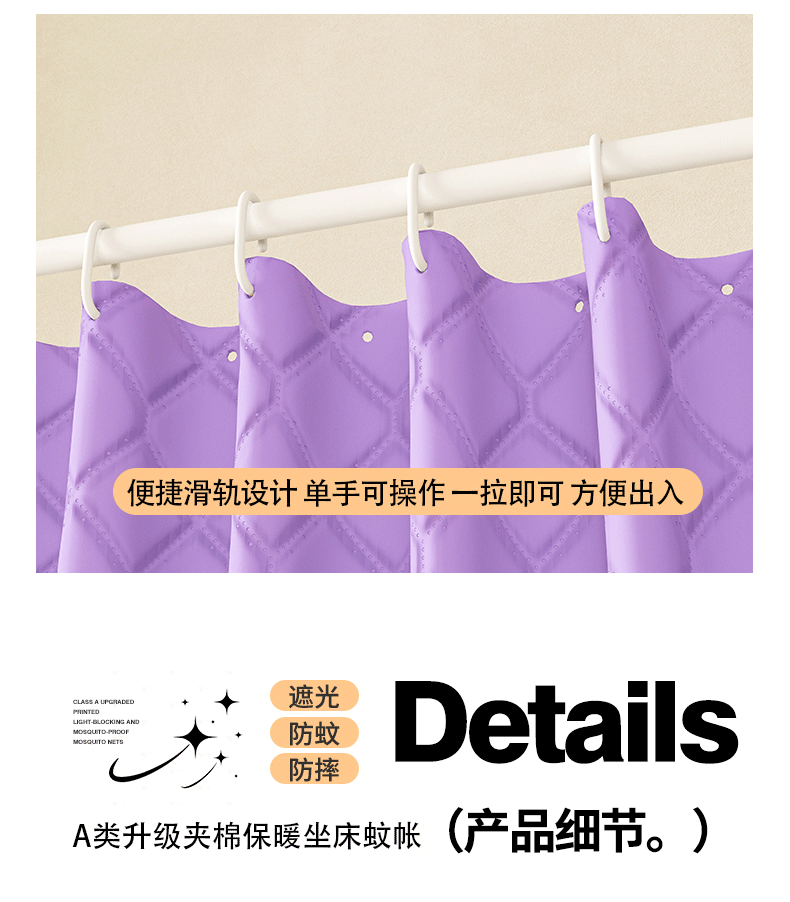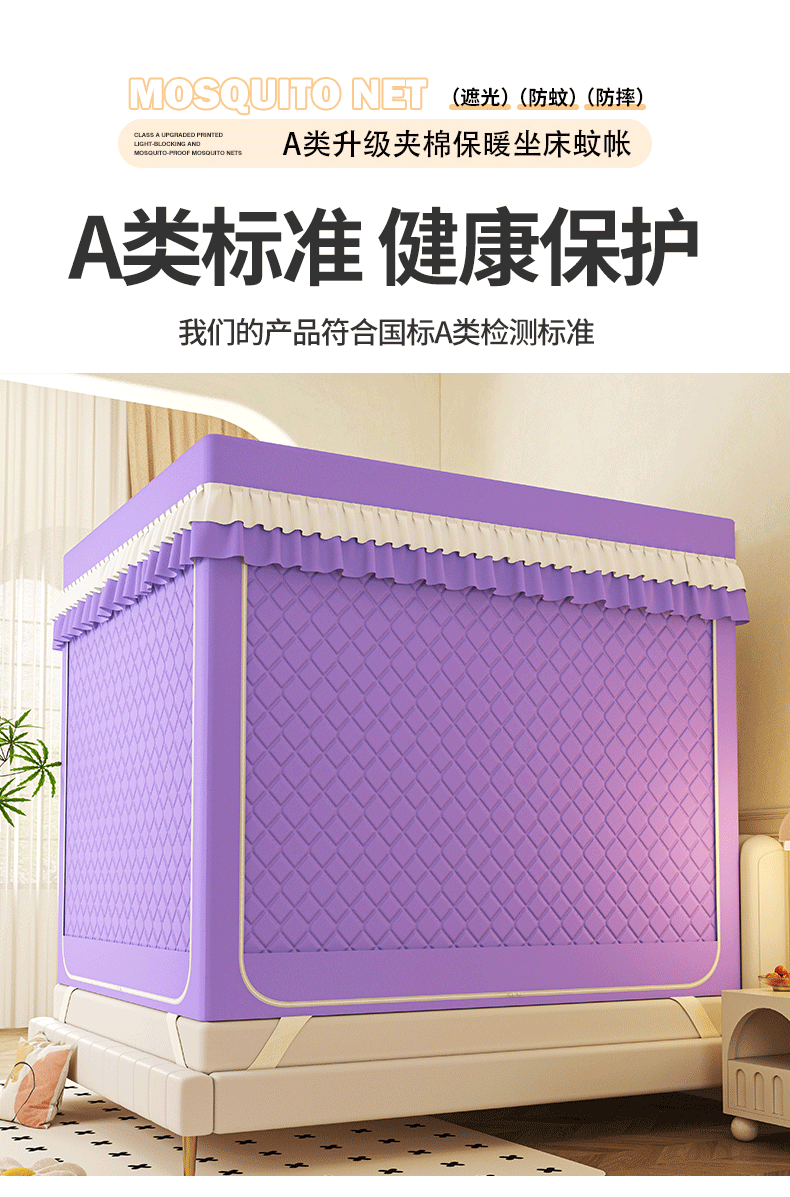 2025新款2506纯色夹棉遮光保暖坐床蚊帐