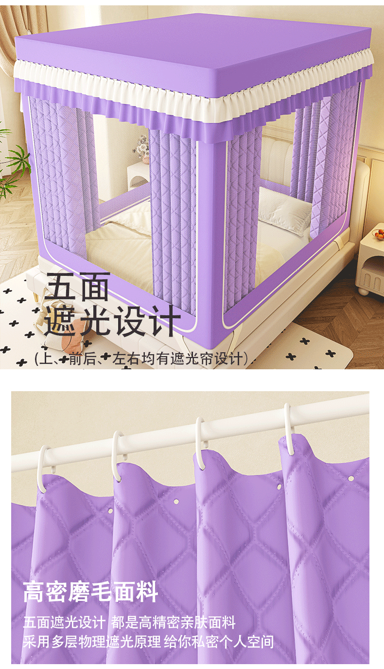 2025新款2519款纯色植绒环保五面强遮光双轨铝合金学生导轨蚊帐