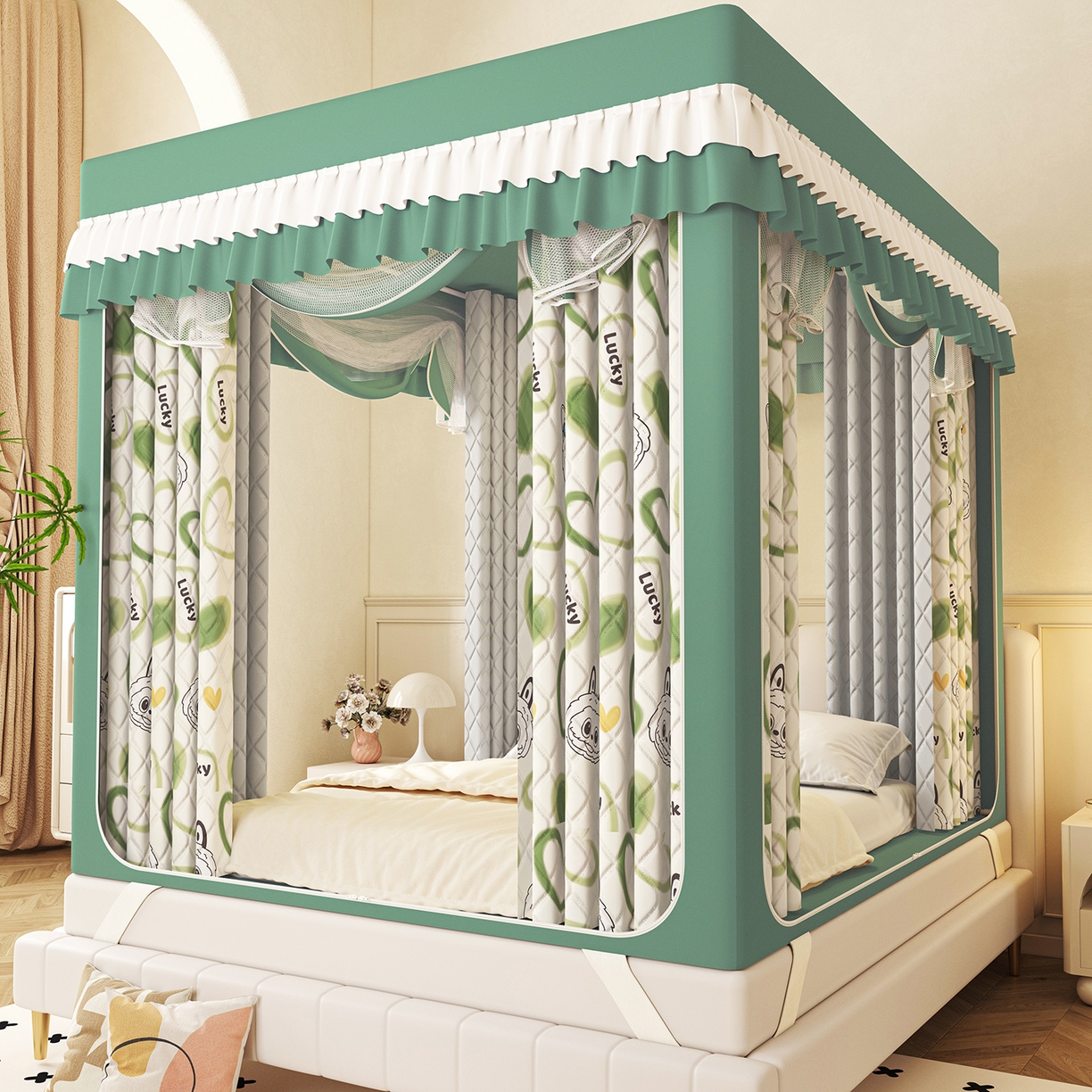 2025新款2604冬季保暖夹棉纯色遮光帘蚊帐全底回底双排储物袋