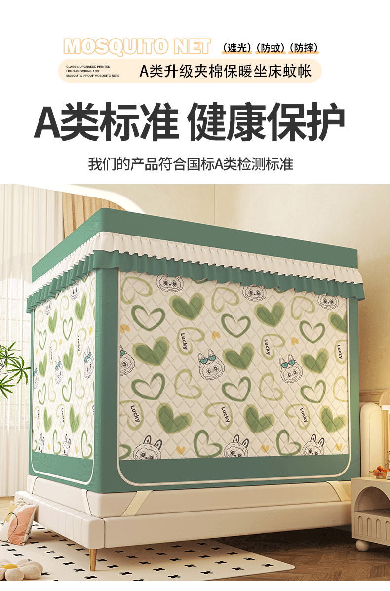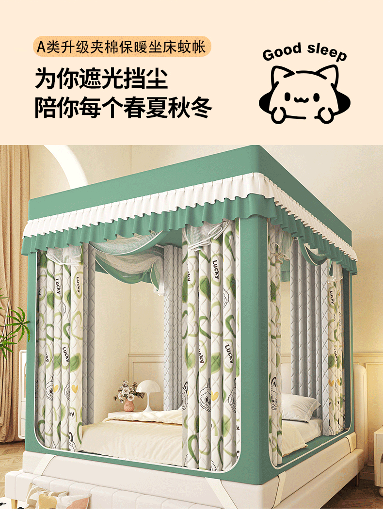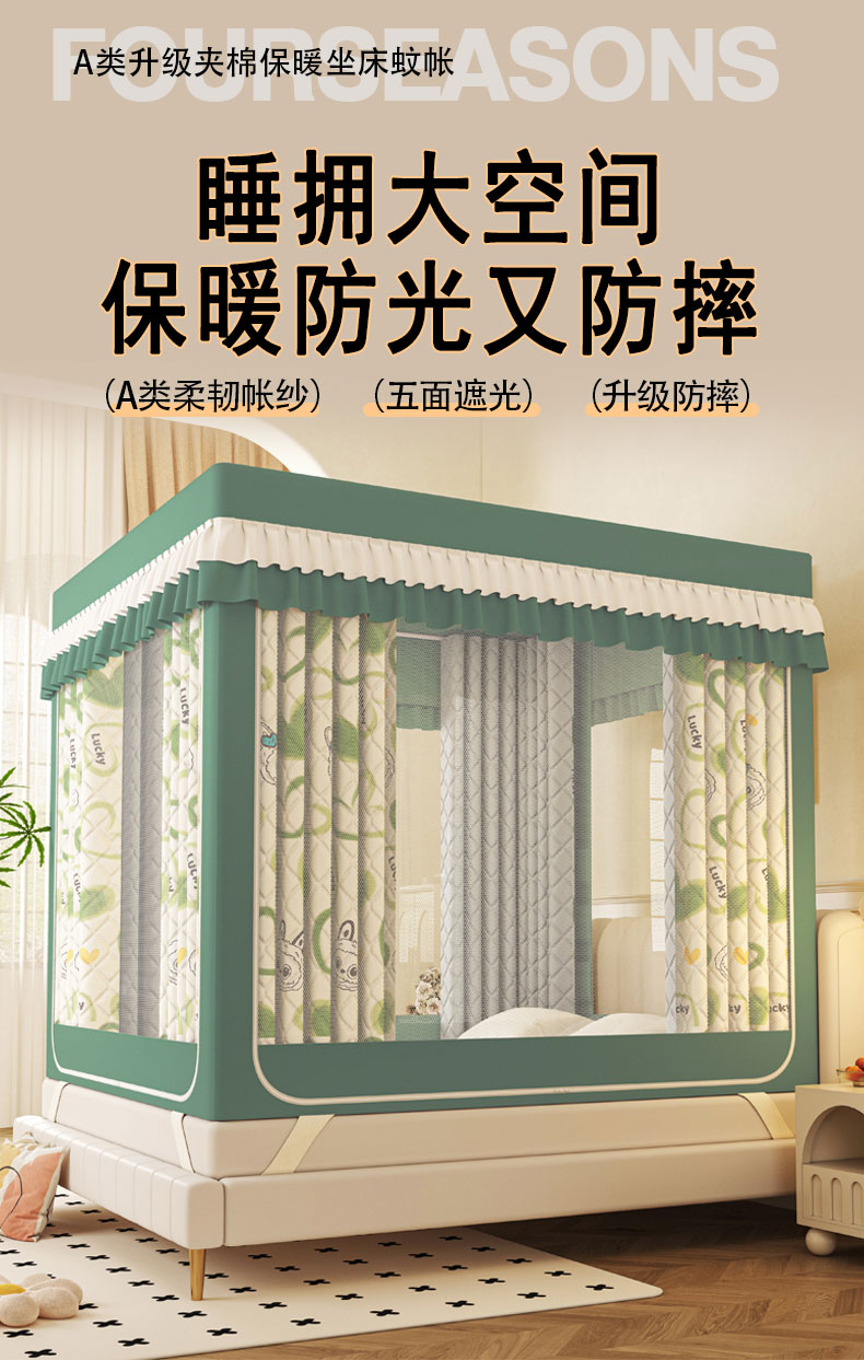 2025新款2507印花夹棉遮光保暖坐床蚊帐