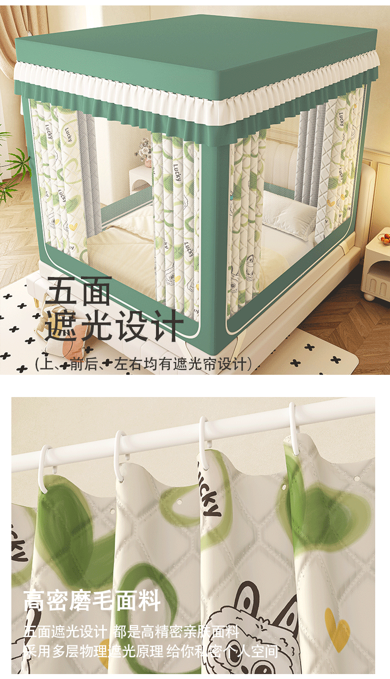 2025新款2520大版数码印花植绒环保五面强遮光学生蚊帐