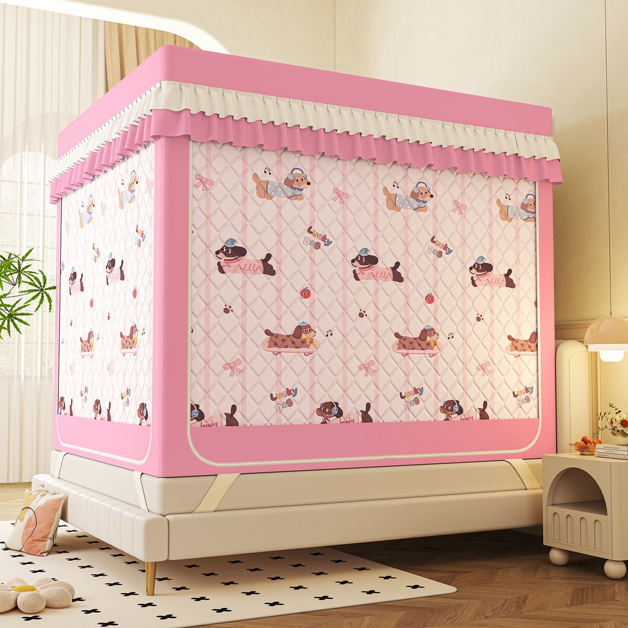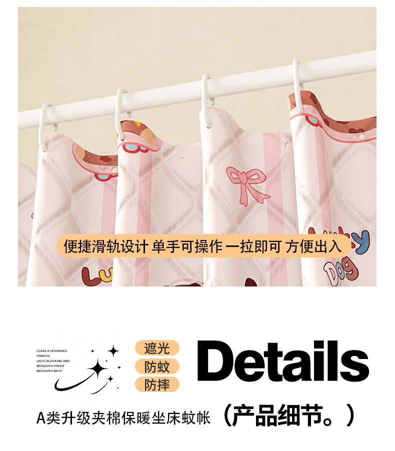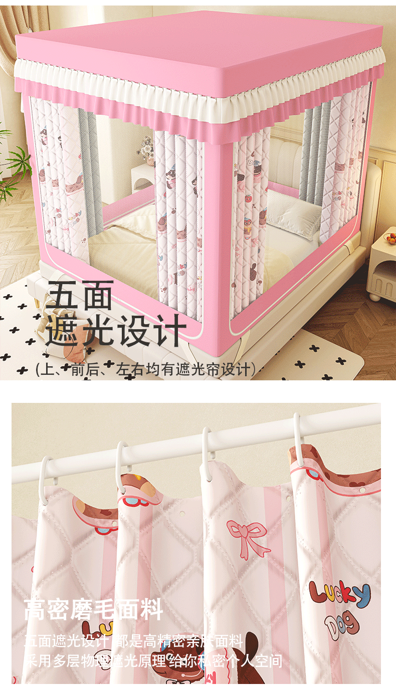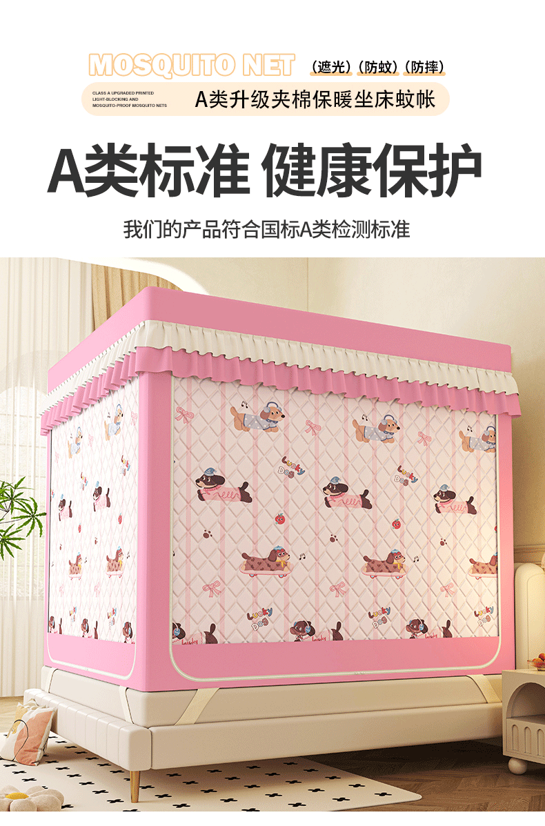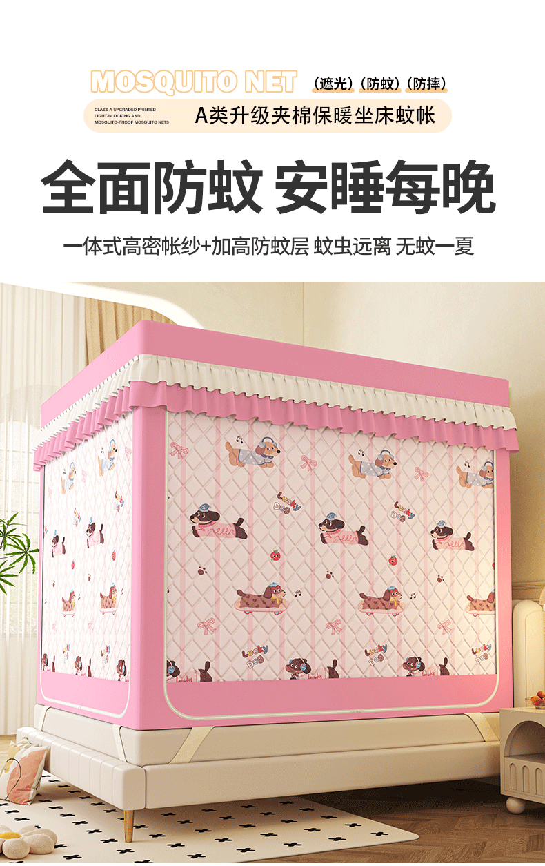 2025新款2502款美人狗烫画围栏级防摔外穿杆坐床蚊帐-场景二