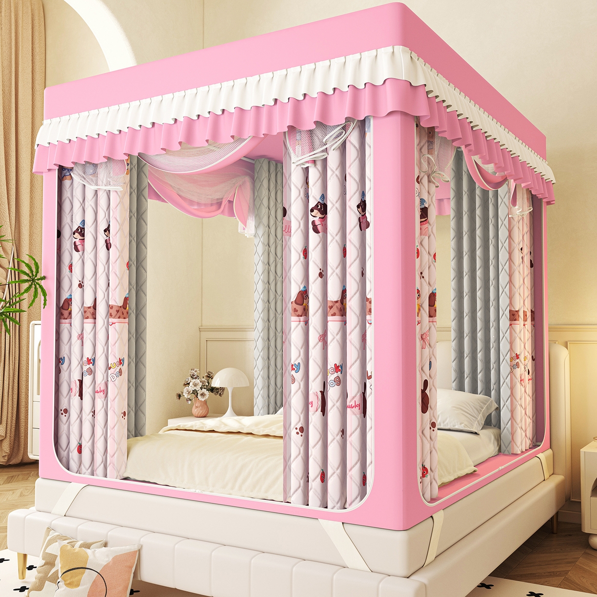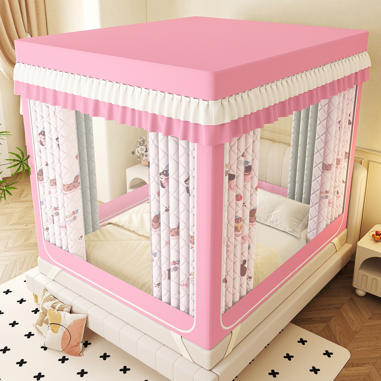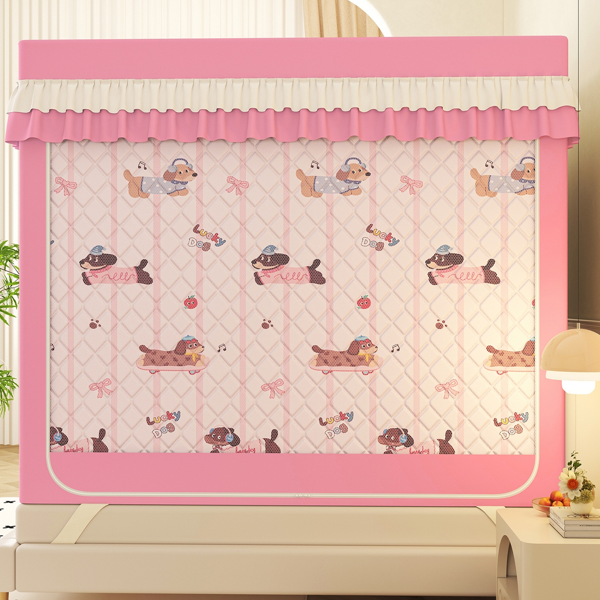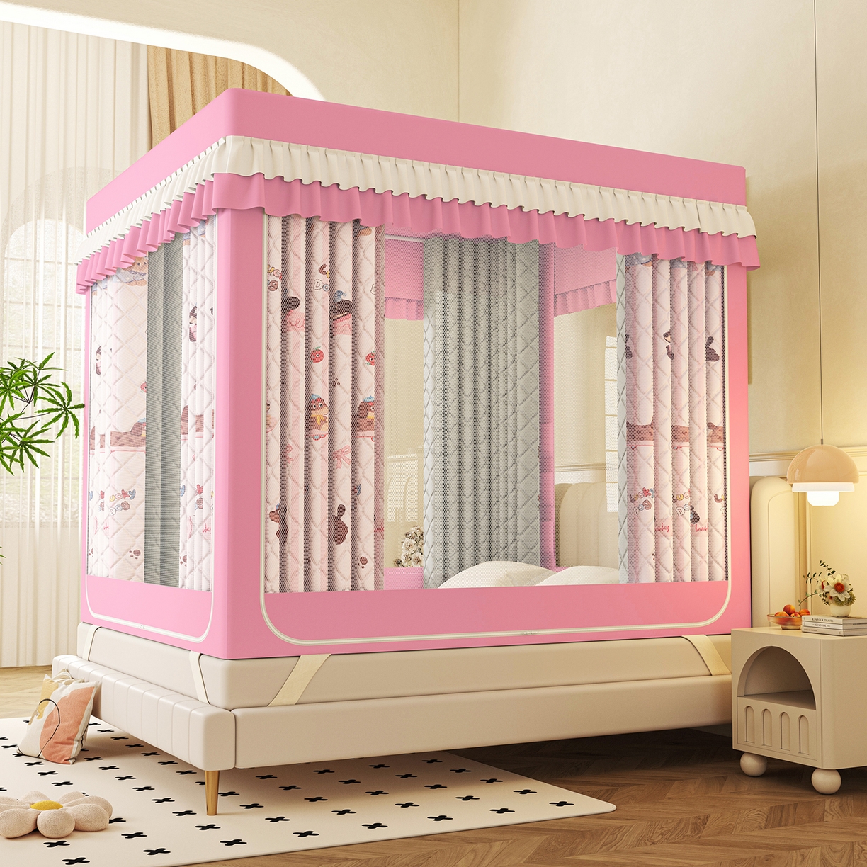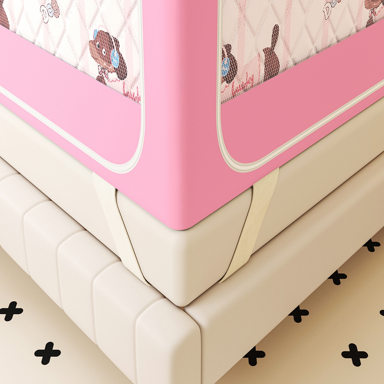 2025新款2502款美人狗烫画围栏级防摔外穿杆坐床蚊帐-场景二