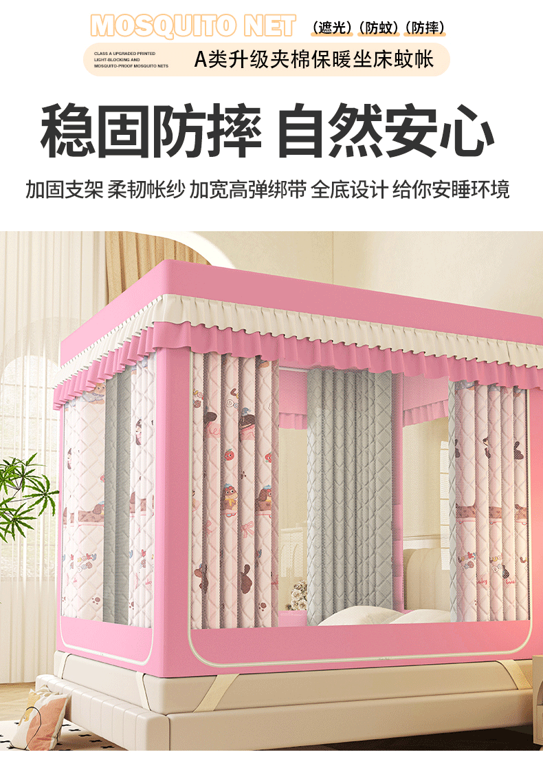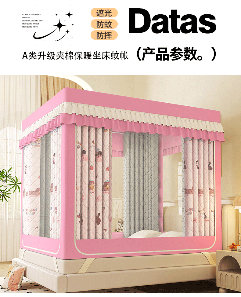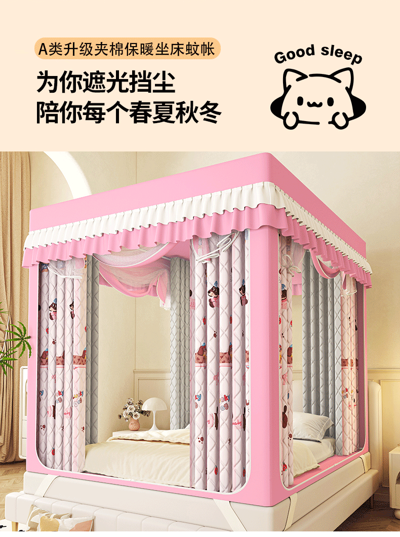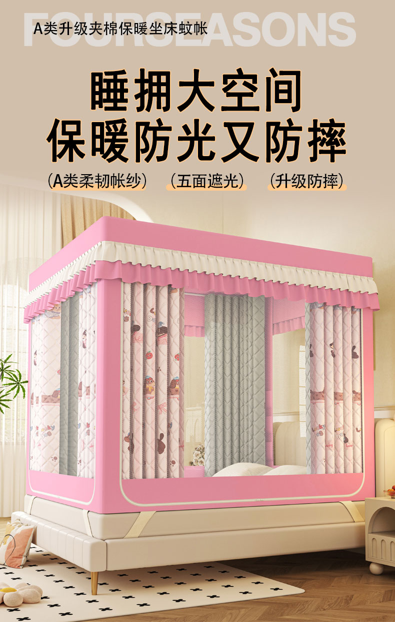 2025新款2507印花夹棉遮光保暖坐床蚊帐