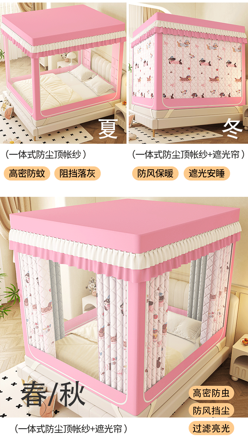 2025新款2604冬季保暖夹棉纯色遮光帘蚊帐全底回底双排储物袋