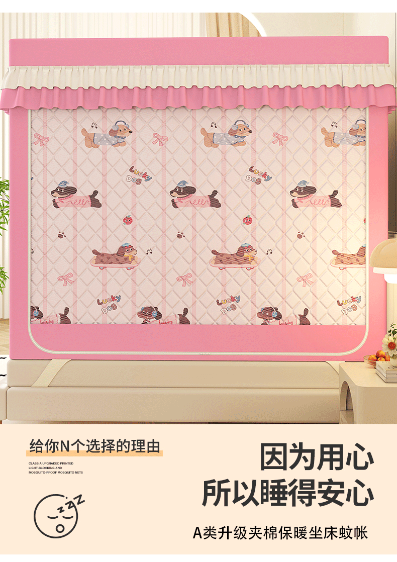 迪凡保罗蚊帐 2025新款2603冬季保暖夹棉印花遮光帘蚊帐全底回底双排储物袋 嗨皮腊肠