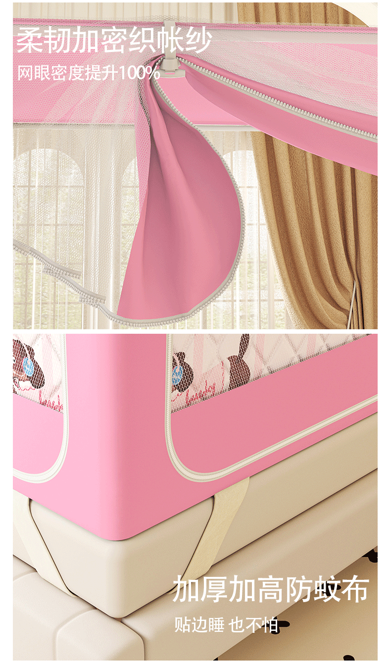 2025新款2511款小兔子烫画围栏级防摔外穿杆坐床蚊帐