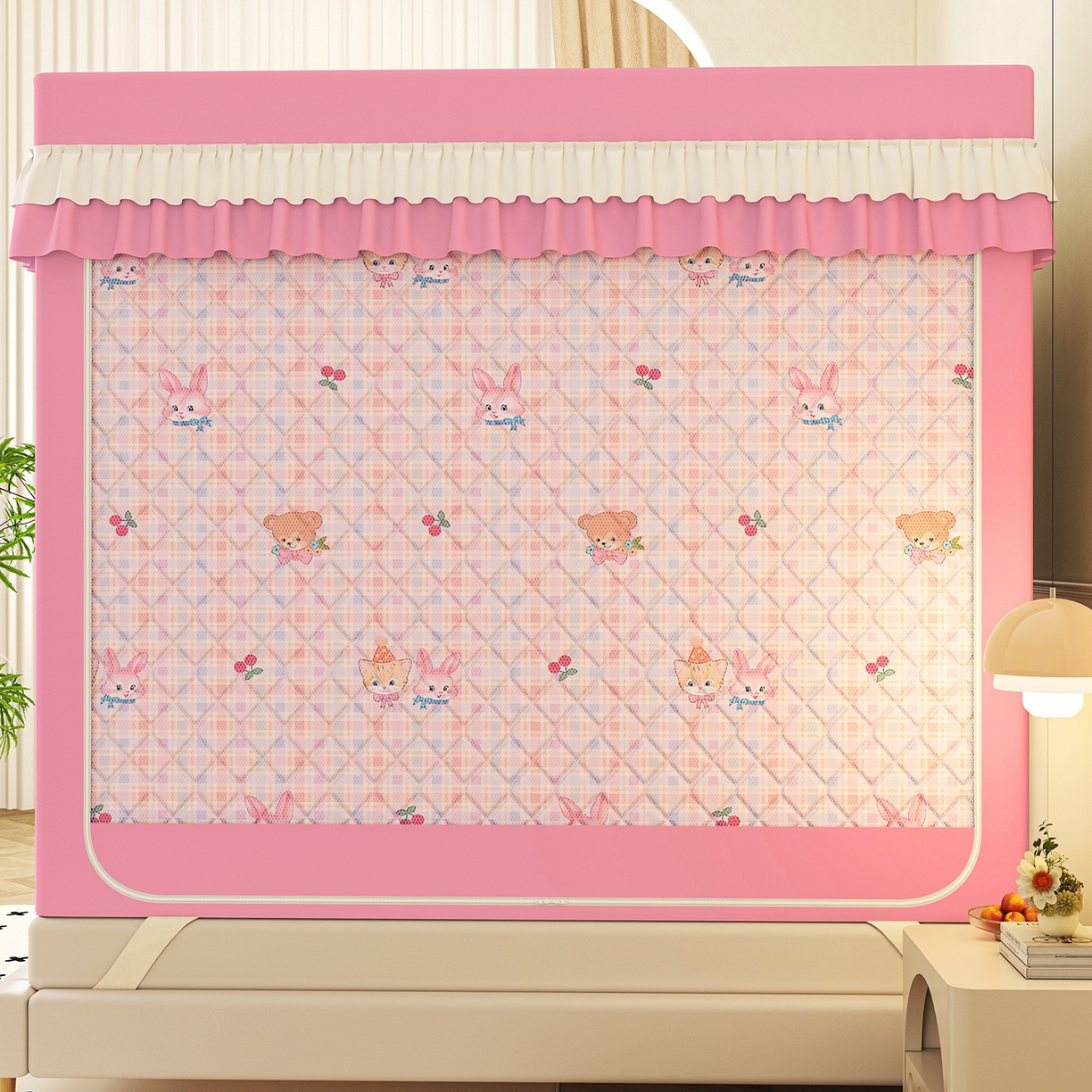 2025新款2603冬季保暖夹棉印花遮光帘蚊帐全底回底双排储物袋