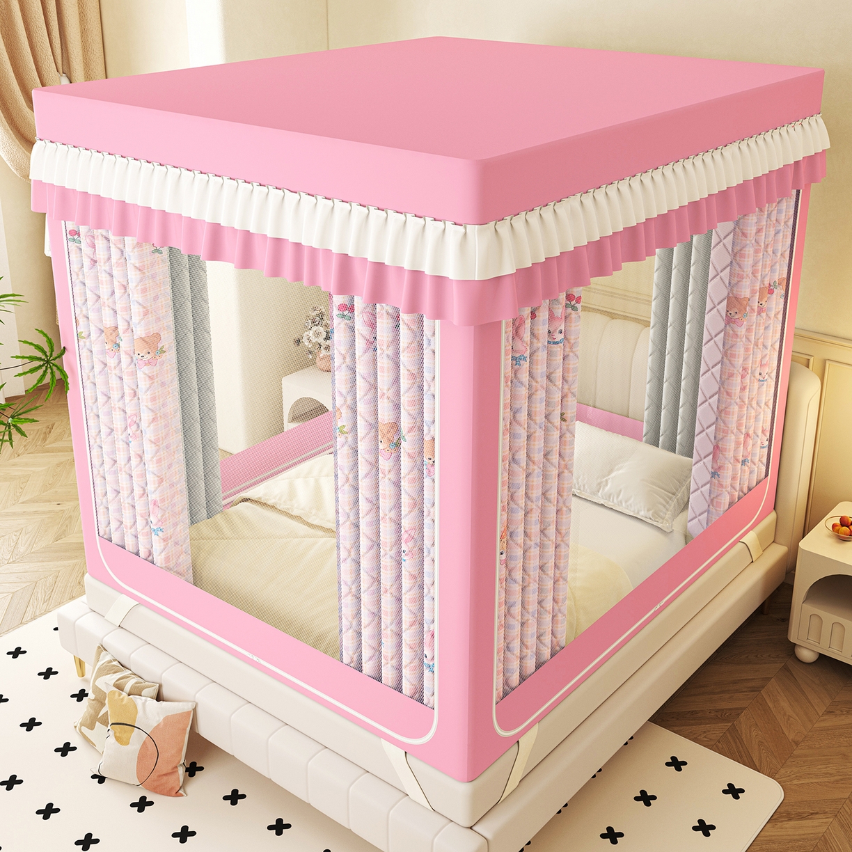 迪凡保罗蚊帐 2025新款2603冬季保暖夹棉印花遮光帘蚊帐全底回底双排储物袋 嗨皮萌宠