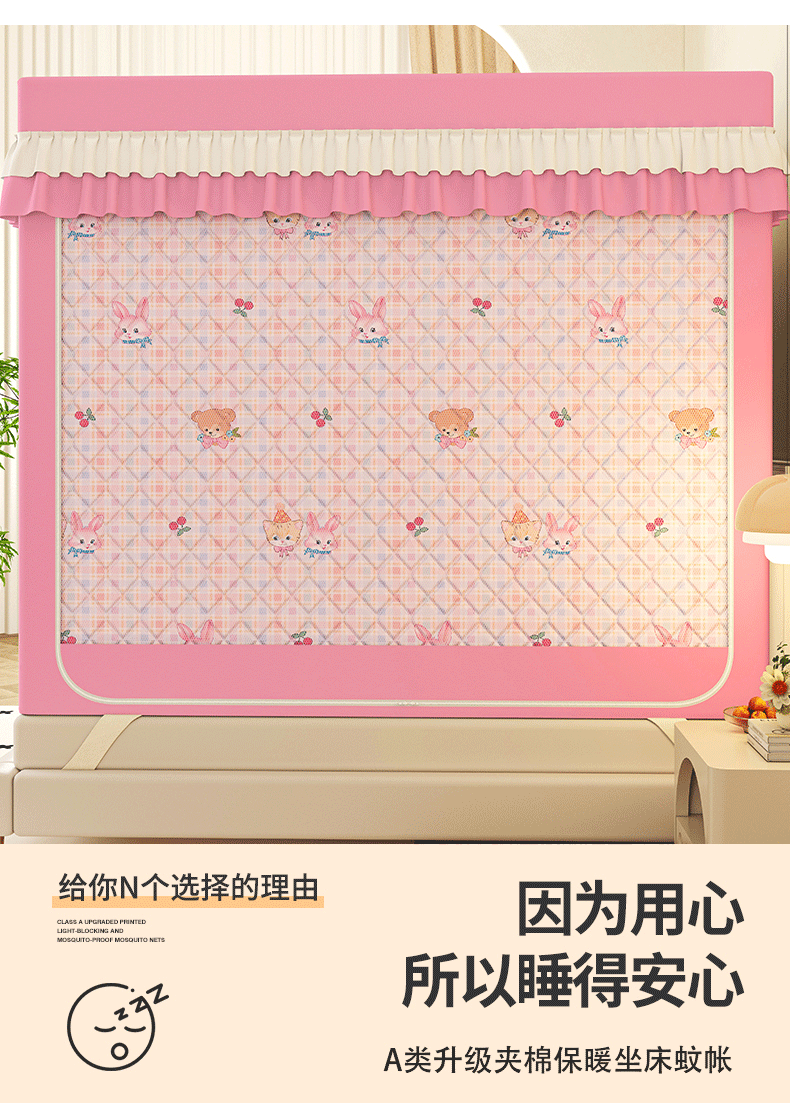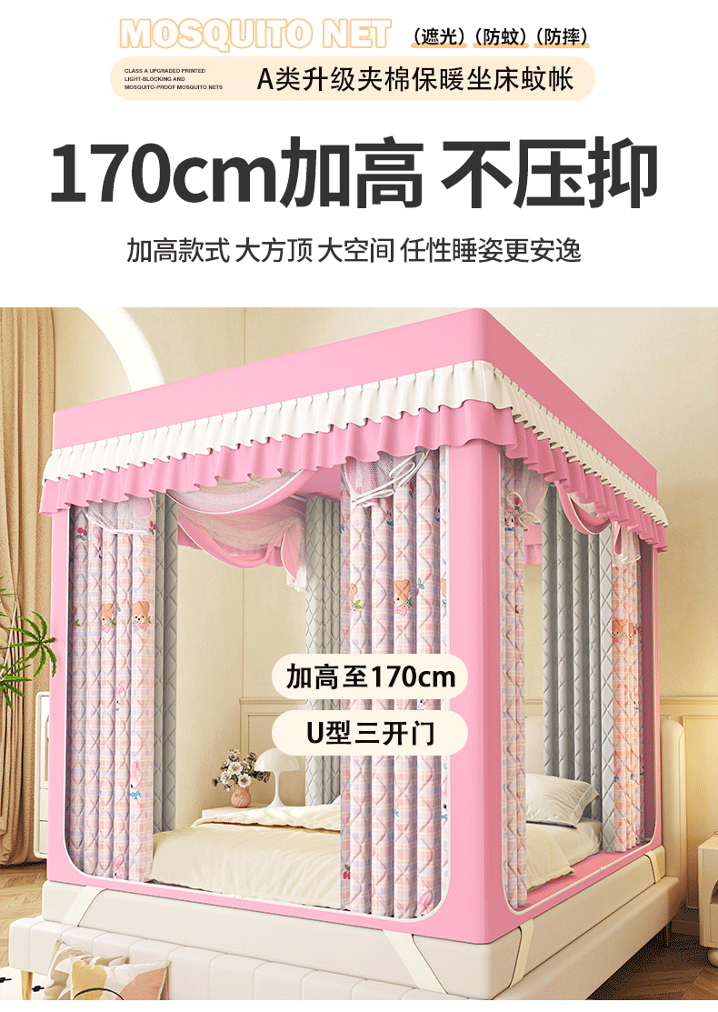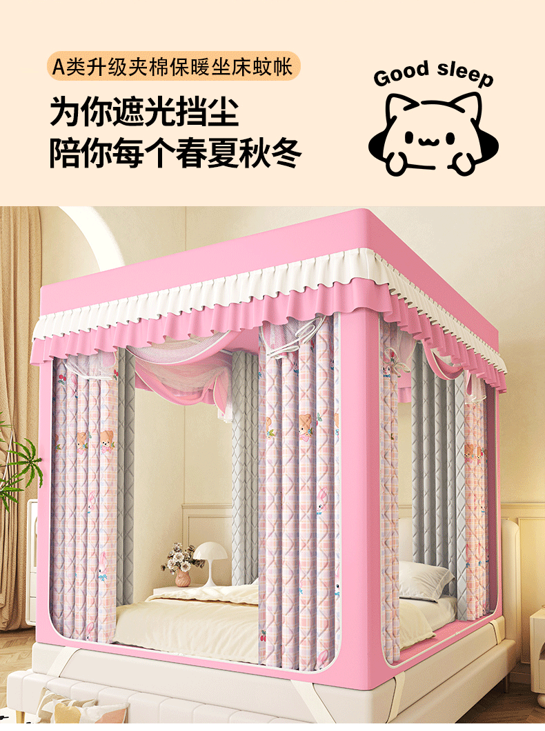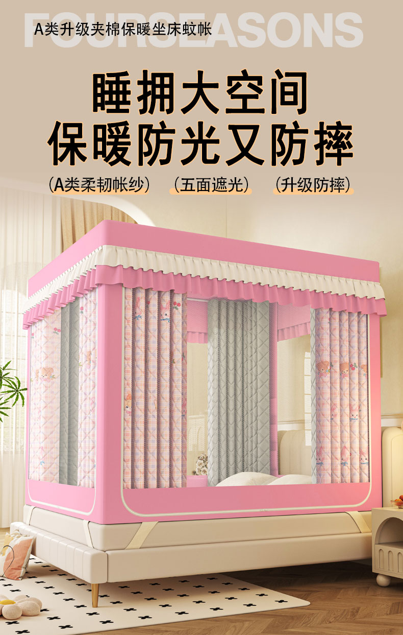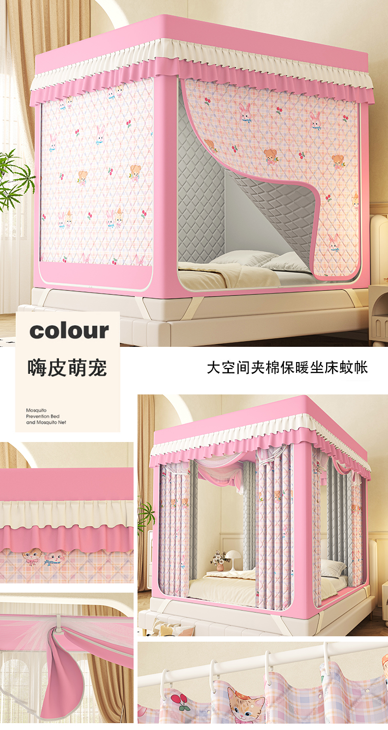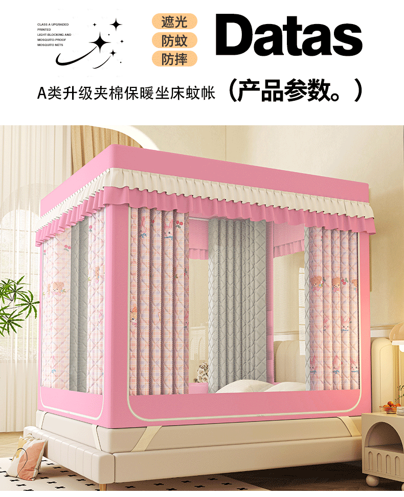 2025新款2507印花夹棉遮光保暖坐床蚊帐