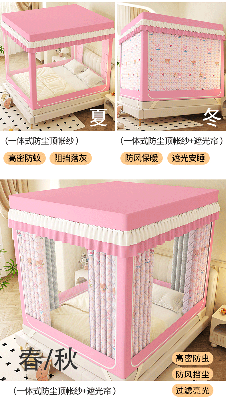 2025新款2604冬季保暖夹棉纯色遮光帘蚊帐全底回底双排储物袋