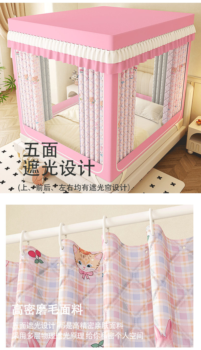 2025新款2520大版数码印花植绒环保五面强遮光学生蚊帐