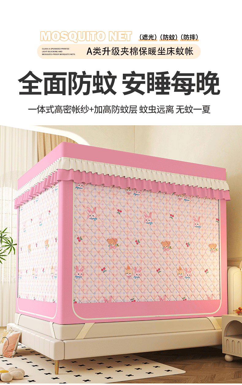 2025新款2511款小兔子烫画围栏级防摔外穿杆坐床蚊帐