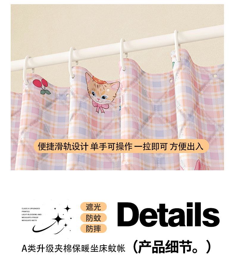 2025新款 2503专版印花遮光帘防摔坐床蚊帐