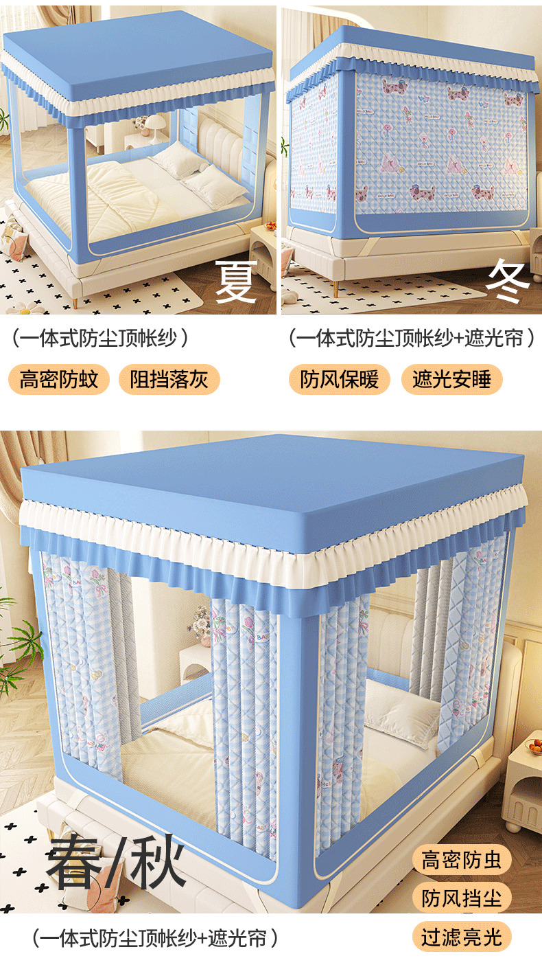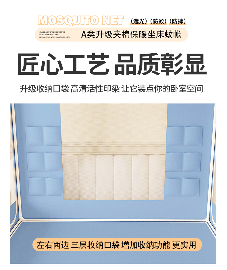 2025新款2604冬季保暖夹棉纯色遮光帘蚊帐全底回底双排储物袋