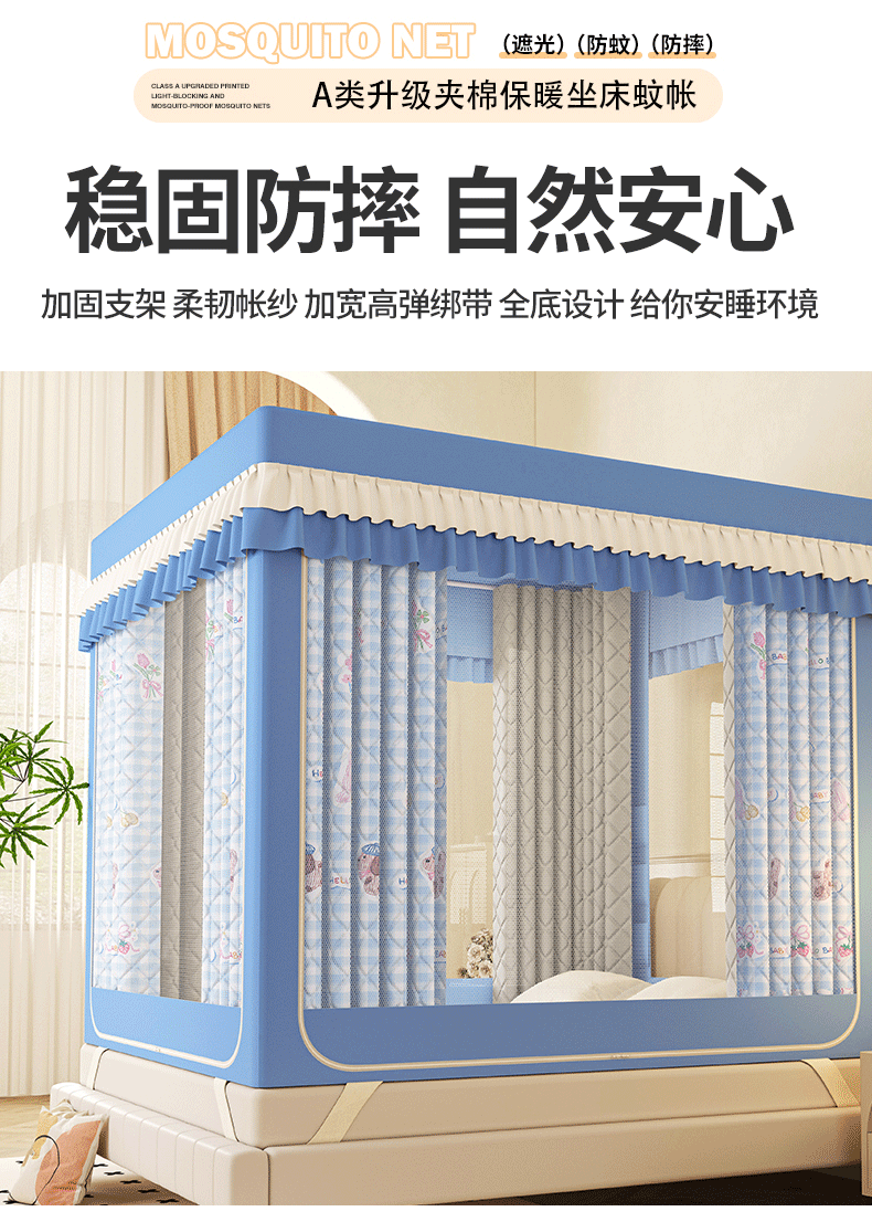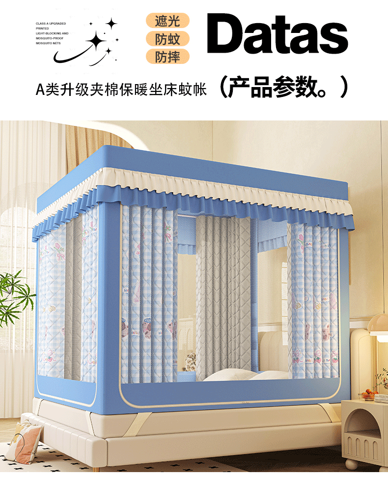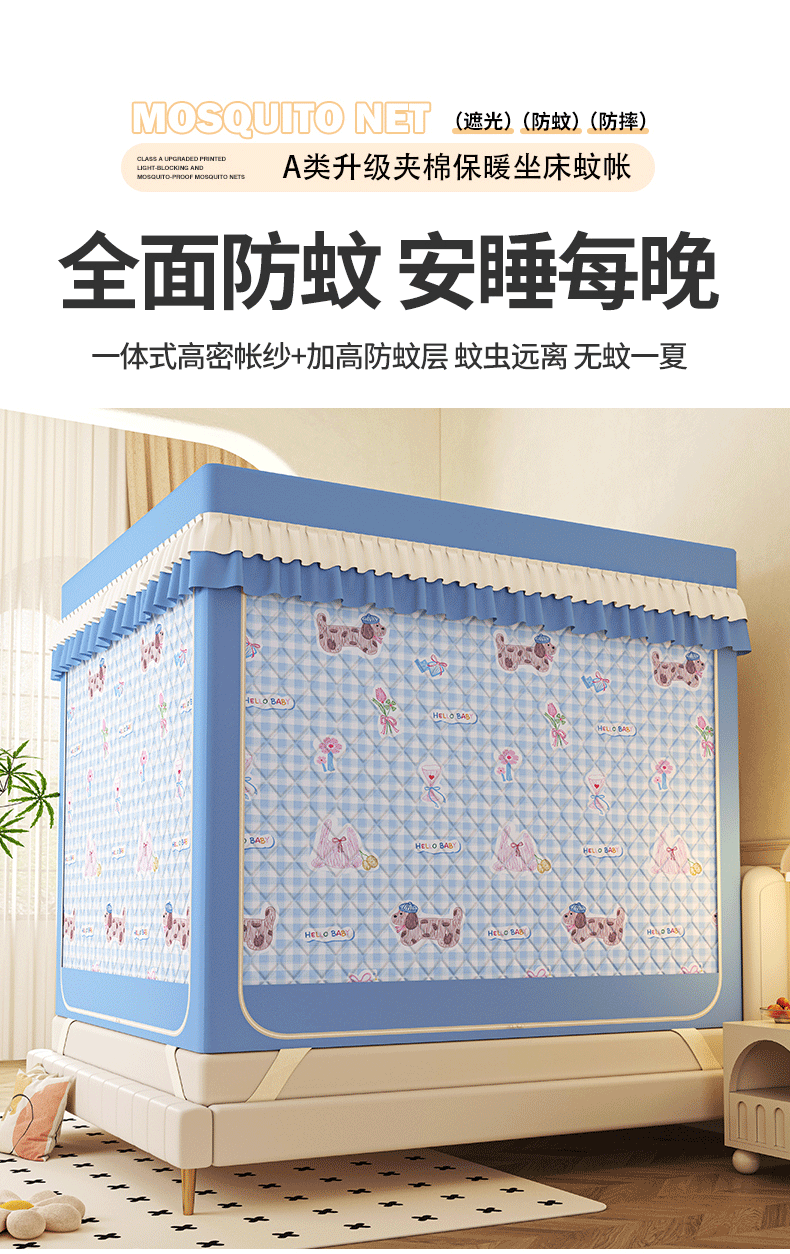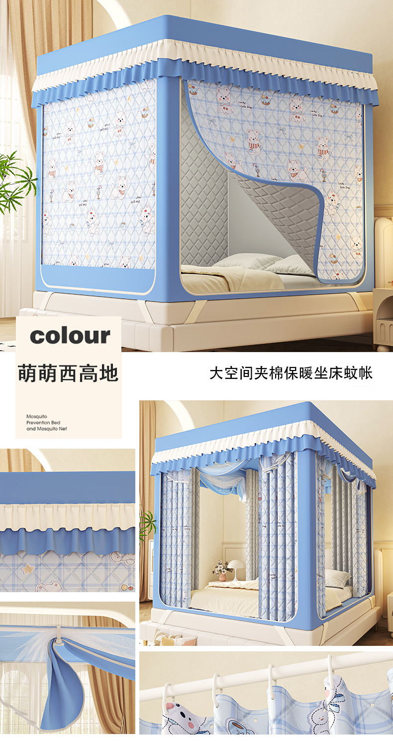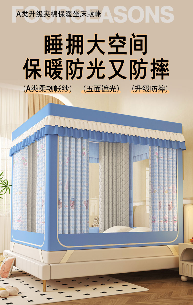 2025新款2507印花夹棉遮光保暖坐床蚊帐