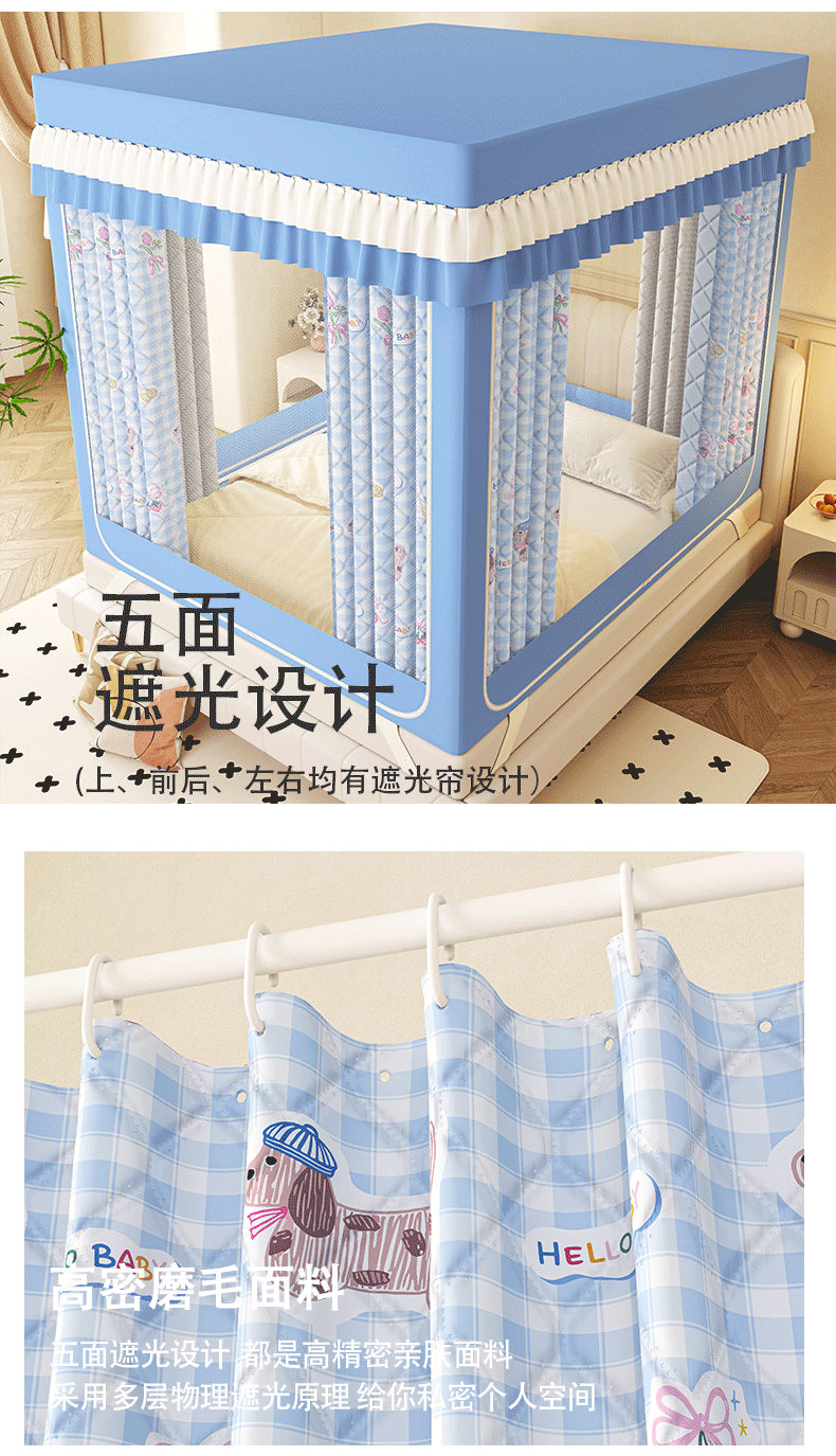 2025新款2520大版数码印花植绒环保五面强遮光学生蚊帐
