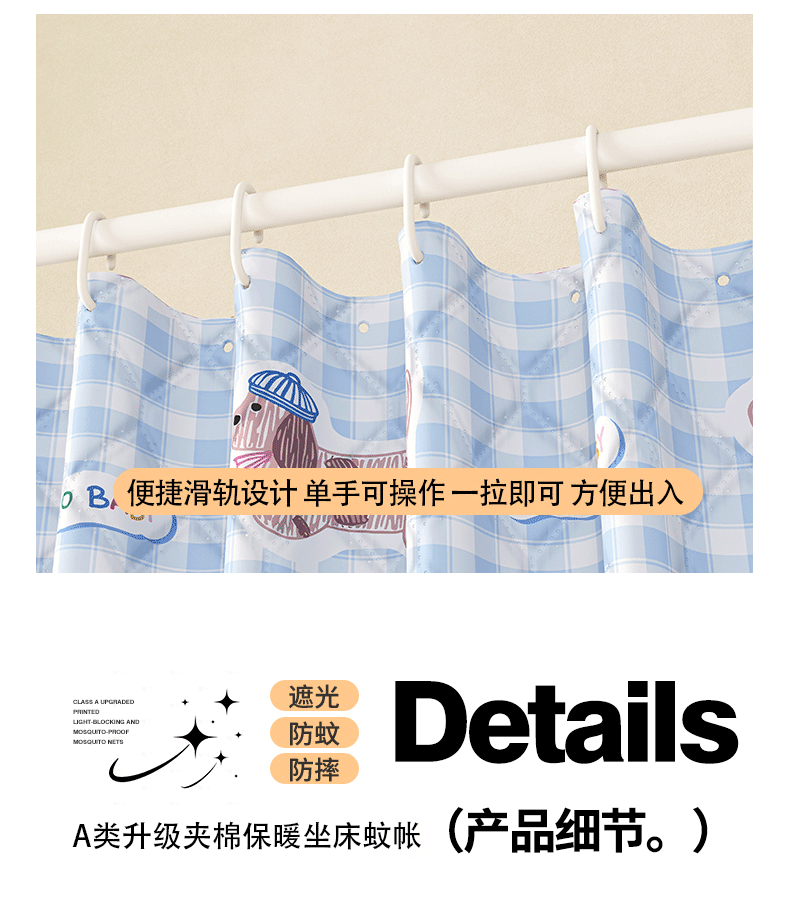 2025新款2502款美人狗烫画围栏级防摔外穿杆坐床蚊帐-场景二