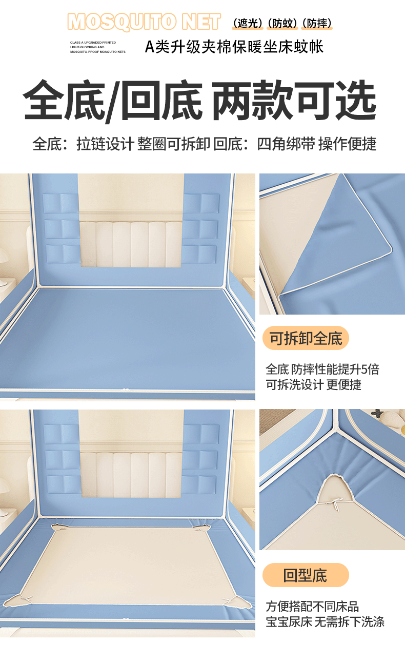 2025新款2506纯色夹棉遮光保暖坐床蚊帐