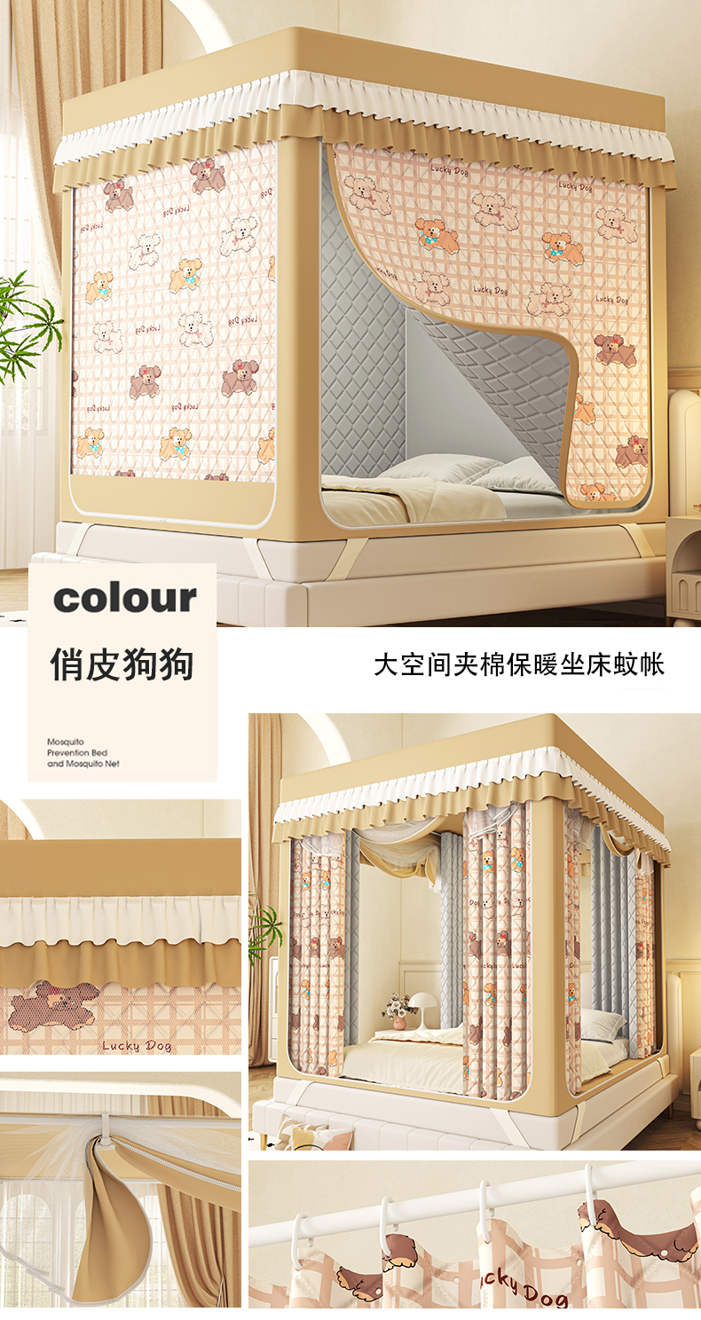 迪凡保罗蚊帐 2025新款2603冬季保暖夹棉印花遮光帘蚊帐全底回底双排储物袋 快乐小狗