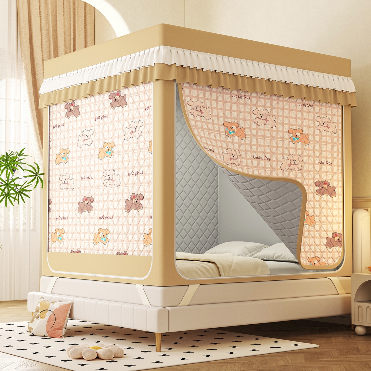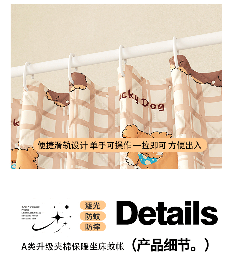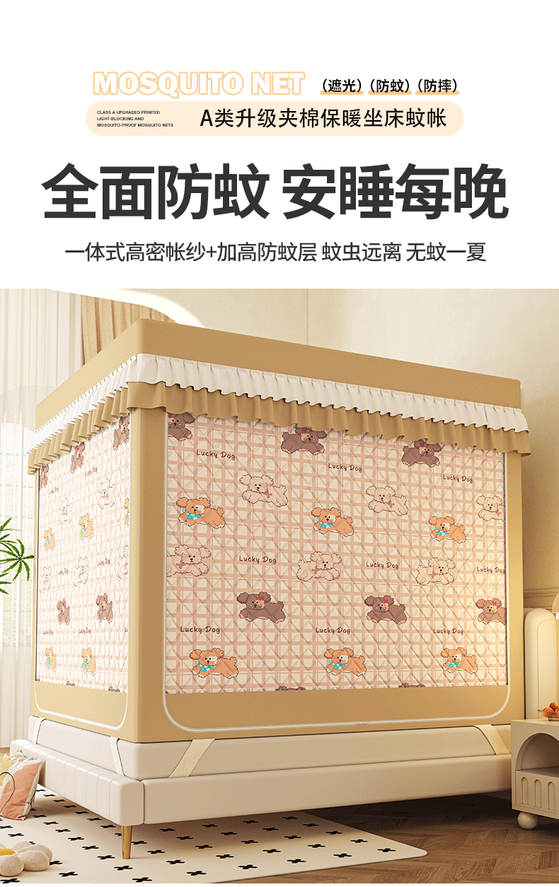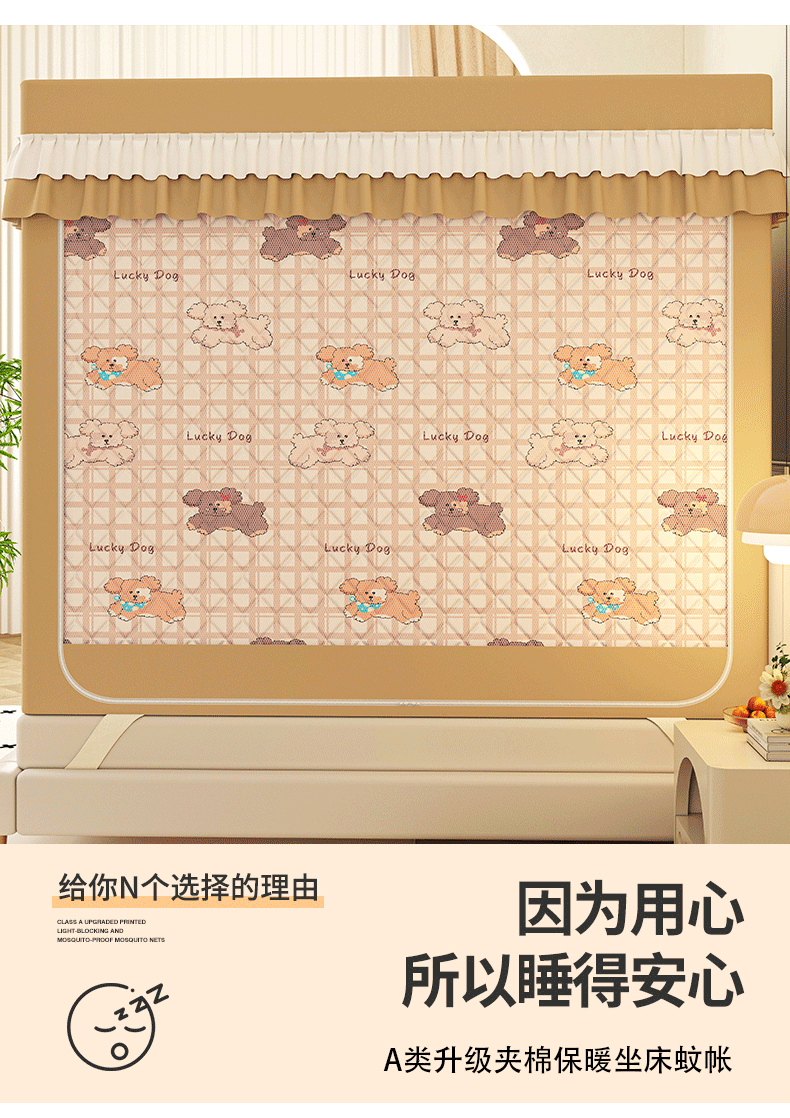 迪凡保罗蚊帐 2025新款2603冬季保暖夹棉印花遮光帘蚊帐全底回底双排储物袋 俏皮狗狗
