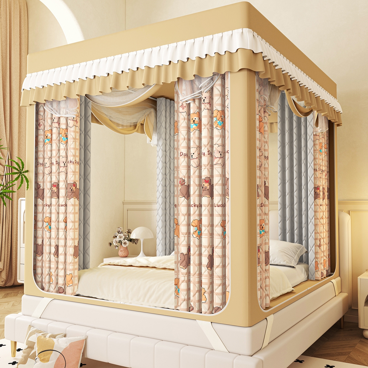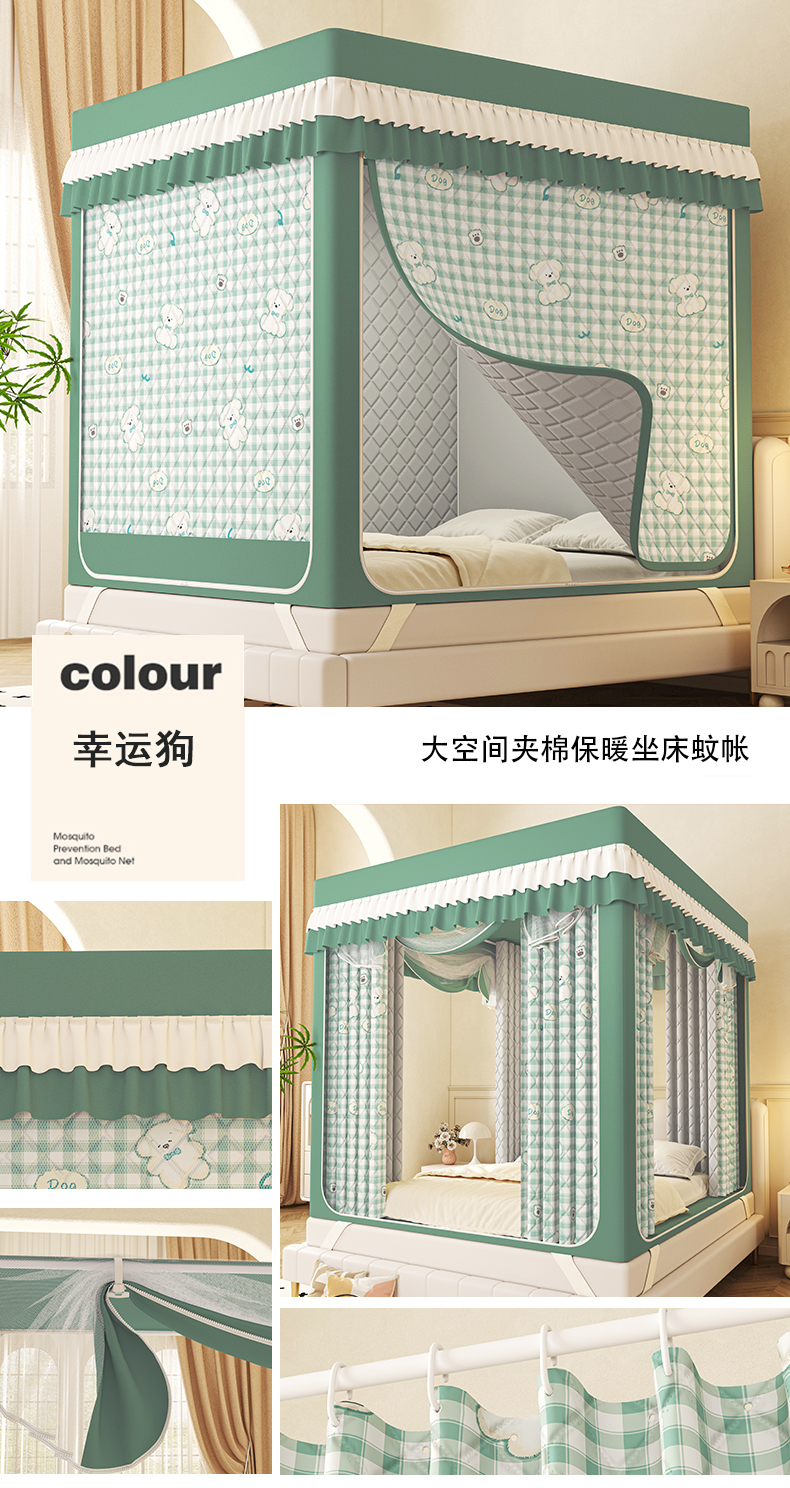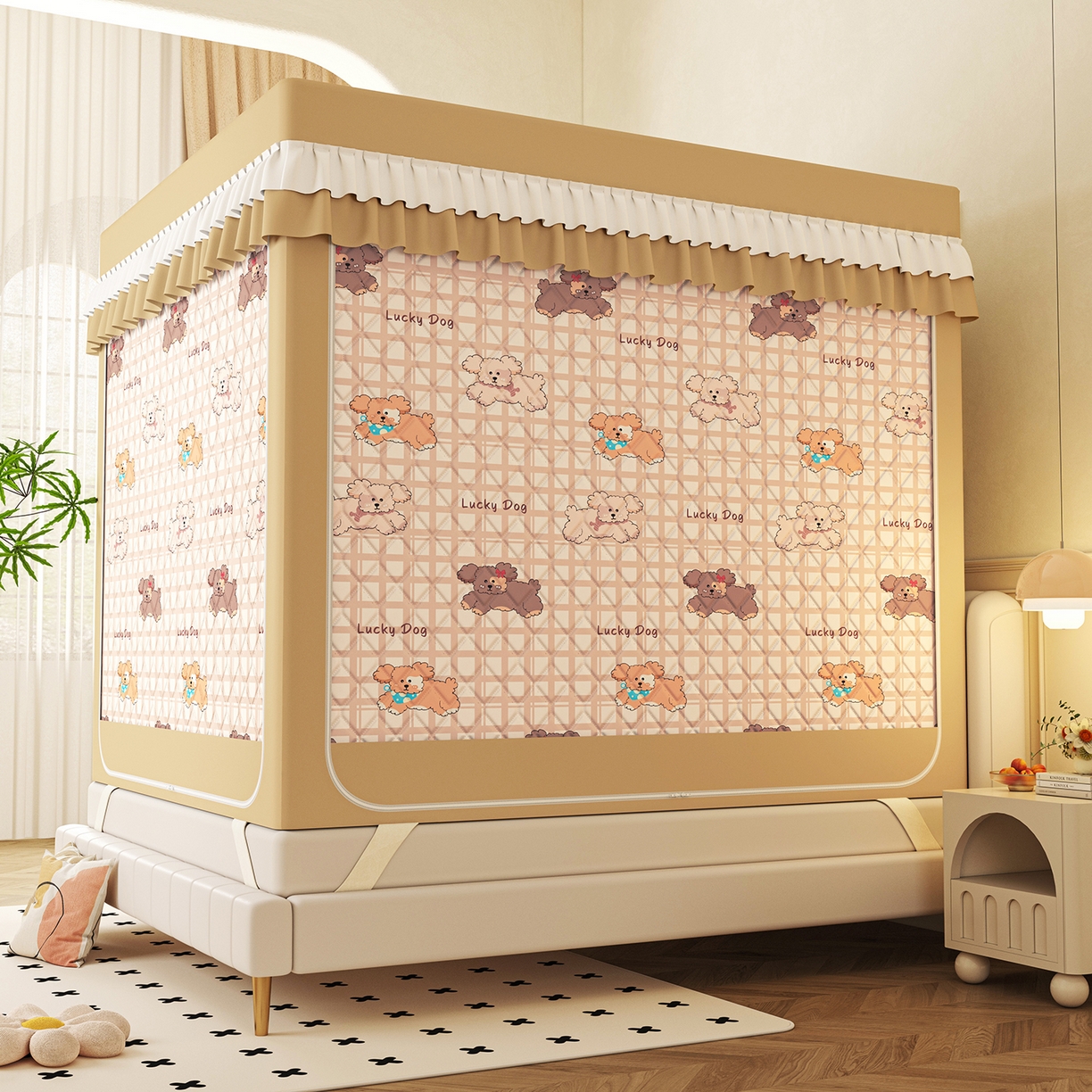 迪凡保罗蚊帐 2025新款2603冬季保暖夹棉印花遮光帘蚊帐全底回底双排储物袋 俏皮狗狗