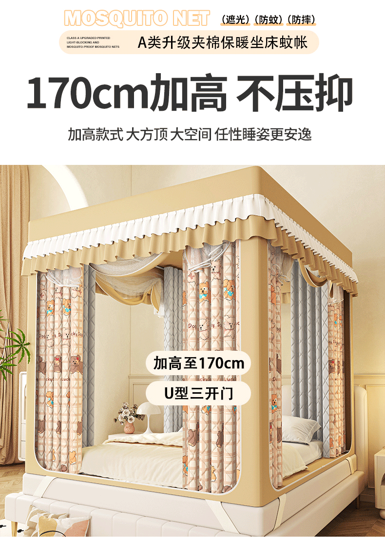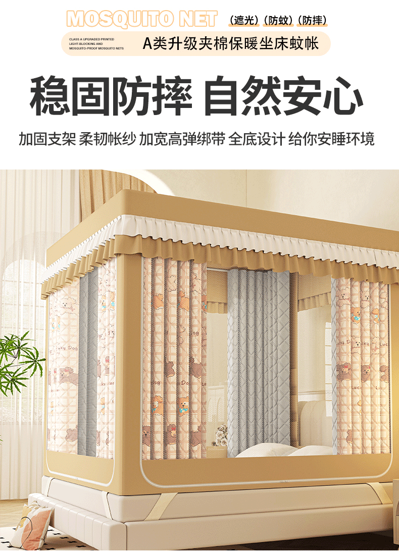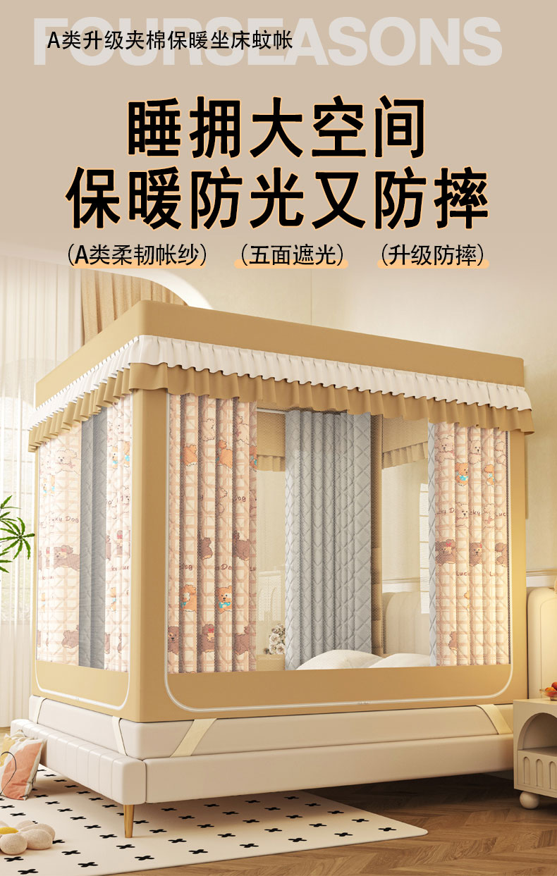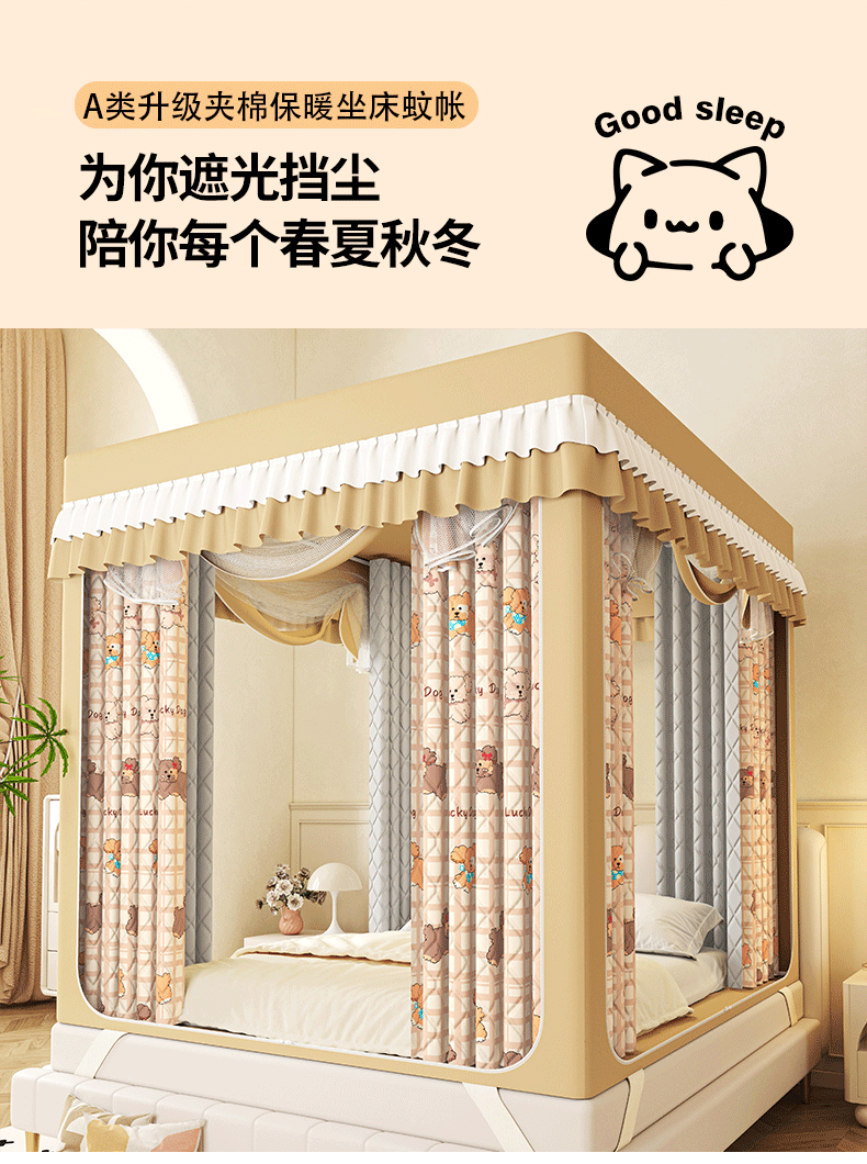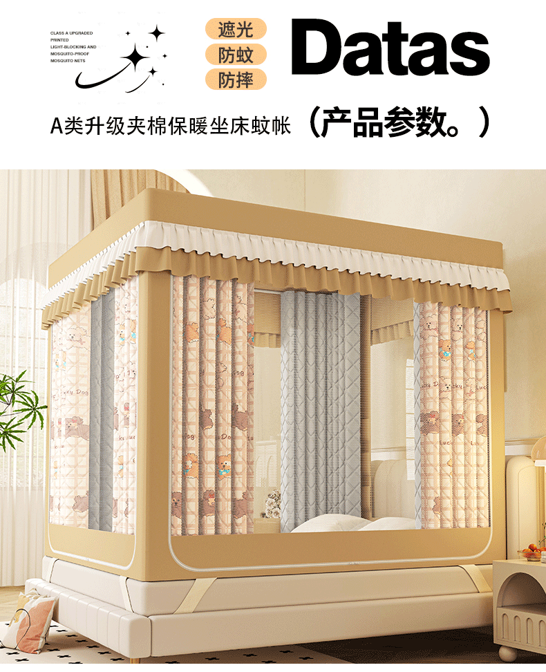 2025新款2507印花夹棉遮光保暖坐床蚊帐