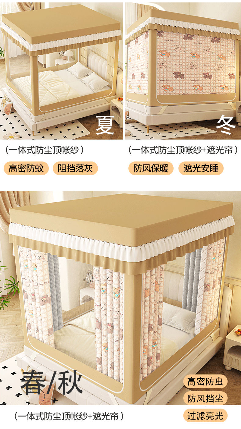 2025新款2604冬季保暖夹棉纯色遮光帘蚊帐全底回底双排储物袋