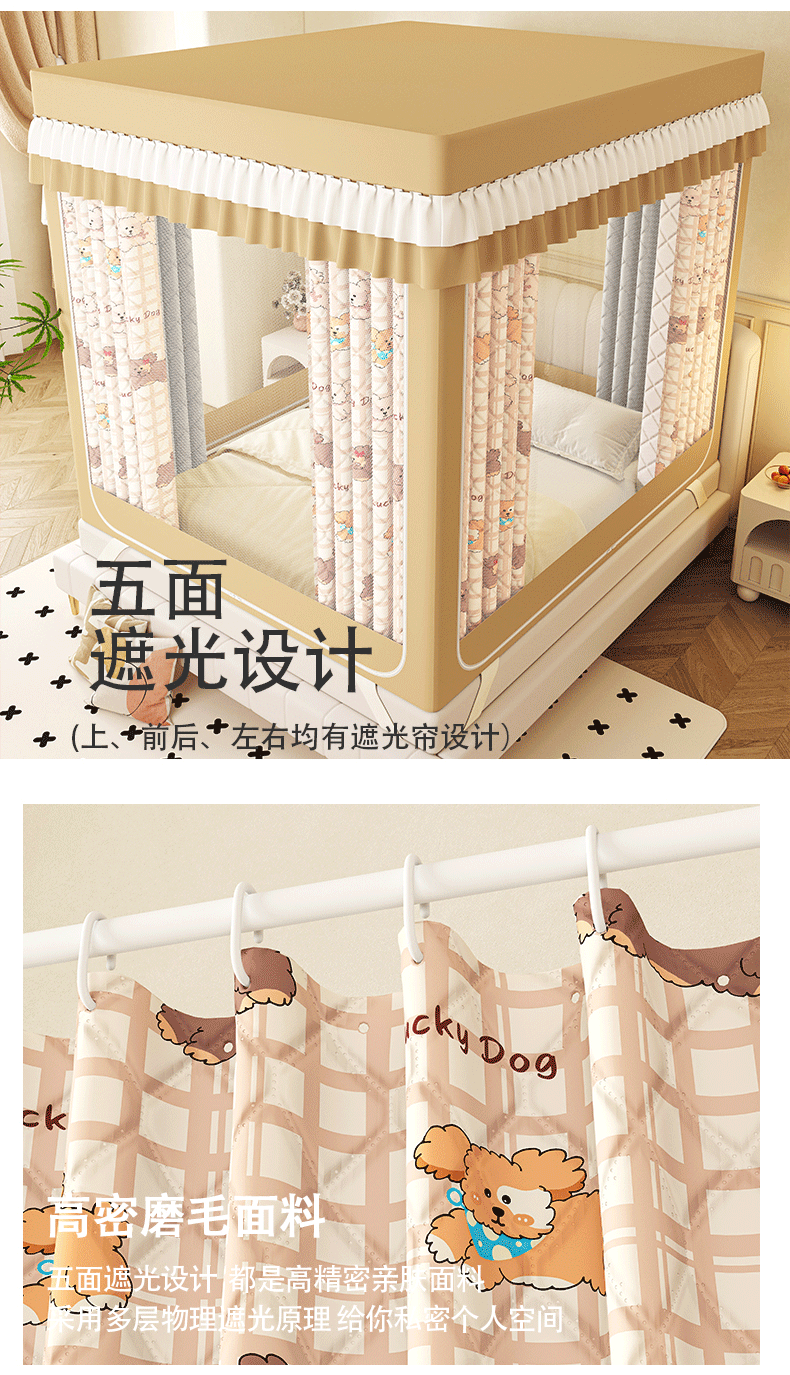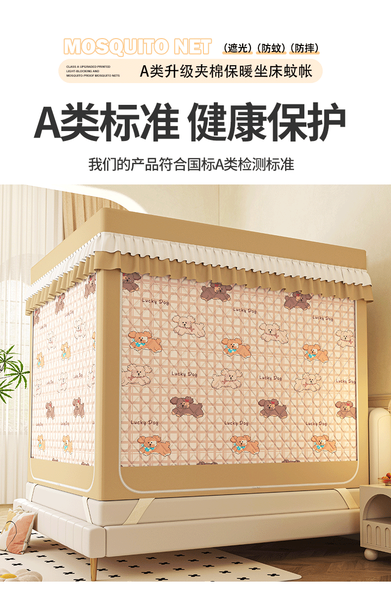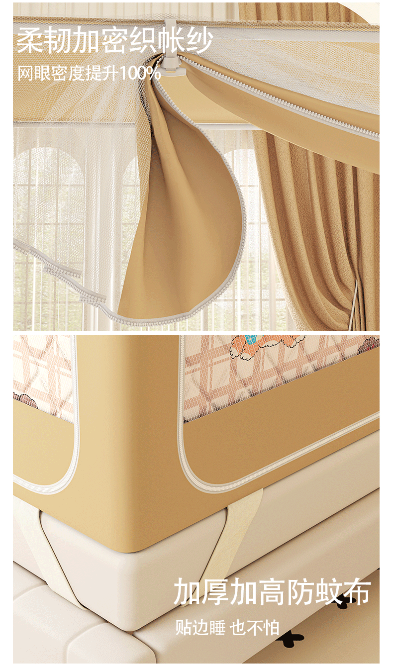2025新款2502款美人狗烫画围栏级防摔外穿杆坐床蚊帐-场景二